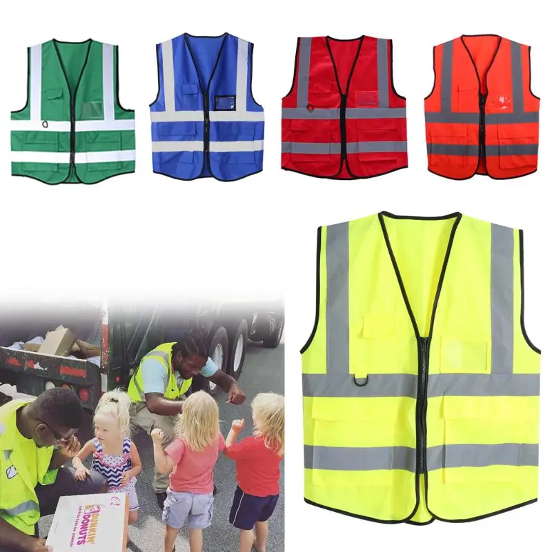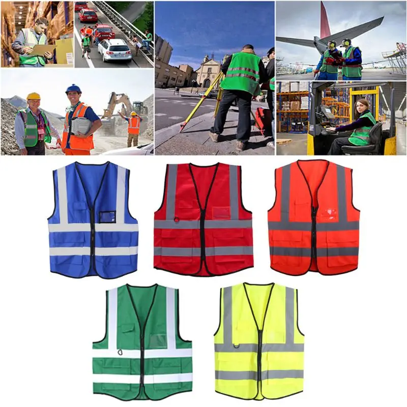 Высоко-видимая Безопасность жилет с застежкой-молнией светоотражающий жилет безопасности жилет 5 карманами