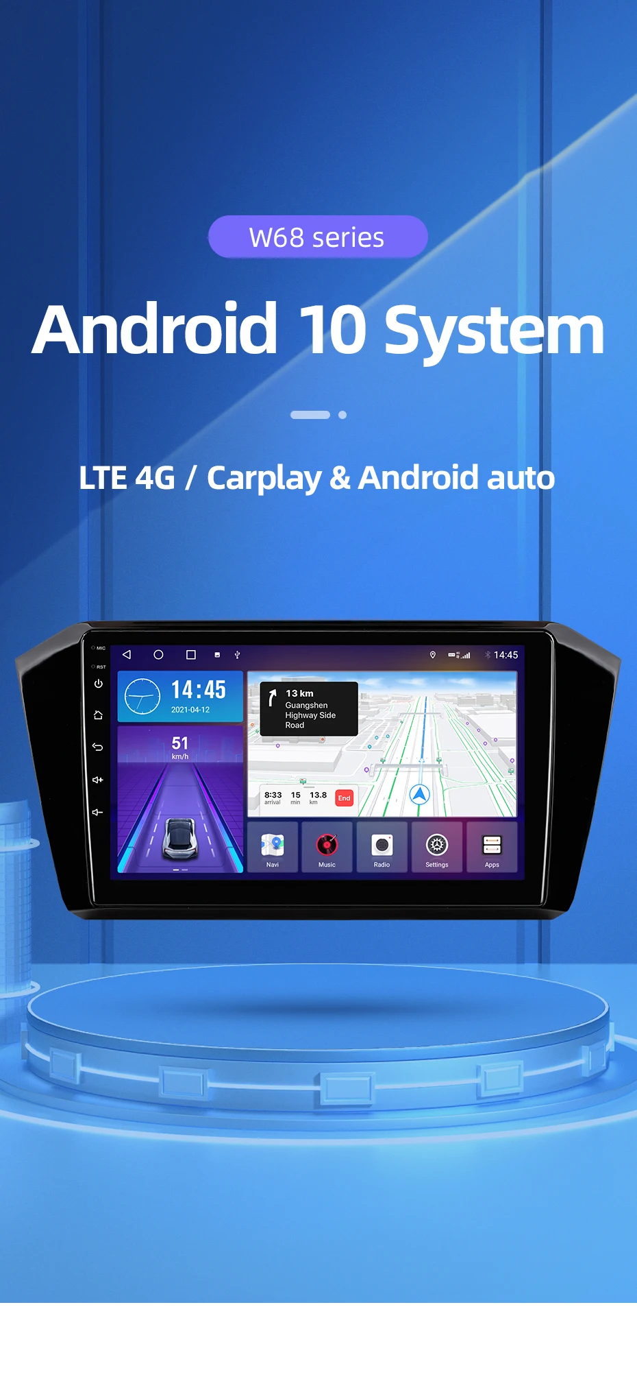 Пожалуйста, обратите внимание: только w68 поддерживает сеть 4G (sim-карта не входит в комплект)>>> Подключите свой автомобильный радиоприемник к Wi-Fi и можете использовать его как телефон, загрузите приложение из игрового магазина, которое вам нравится.
