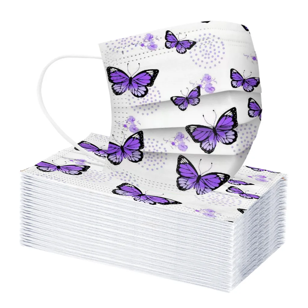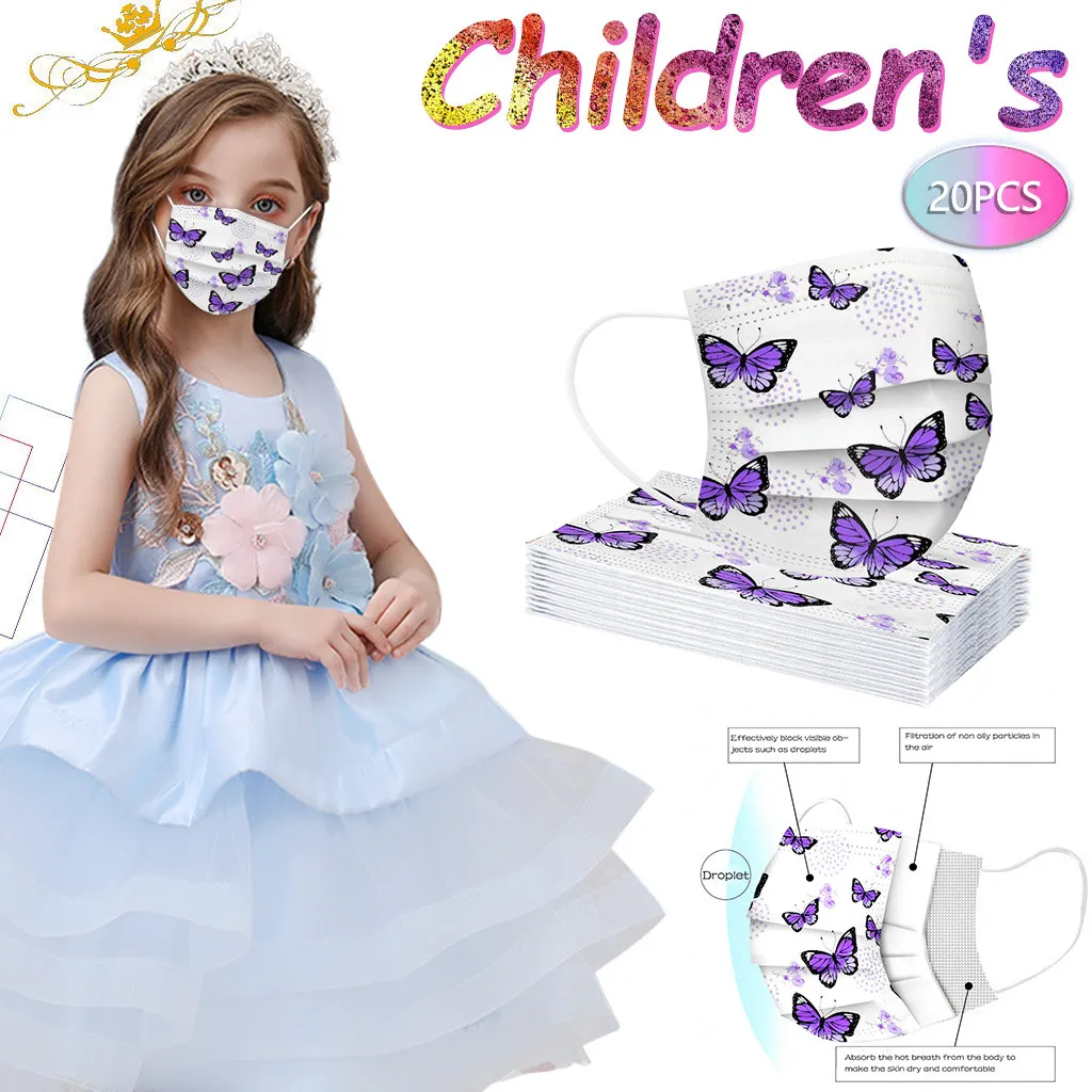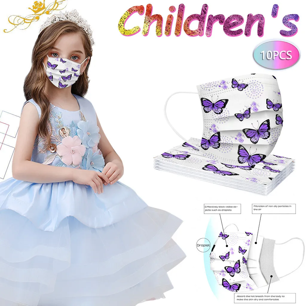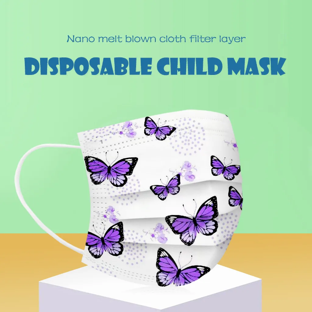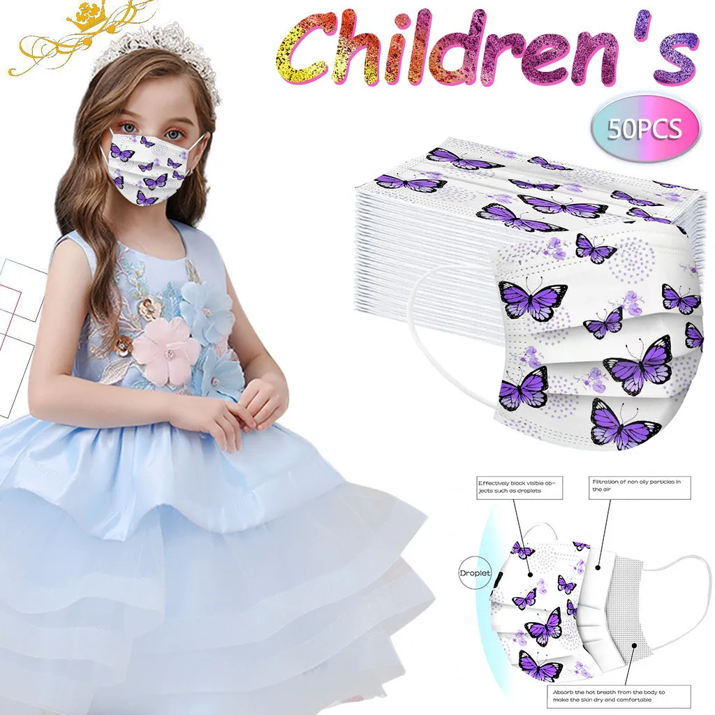 Детская фиолетовая маска с бабочками одноразовые маски для лица 3 слоя Маска Мягкая дышащая Милая гигиеническая детская маска для лица Быстрая доставка