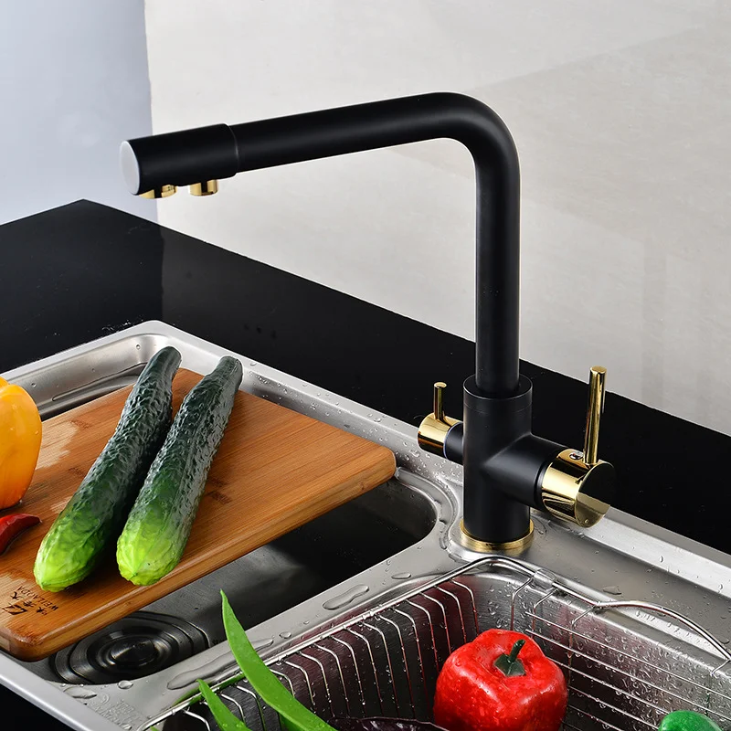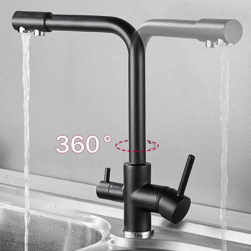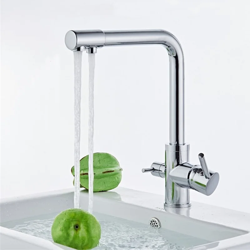 Кран для питьевой воды, кухонный смеситель с фильтрованной питьевой водой, вращение 360 градусов, две ручки, семь букв