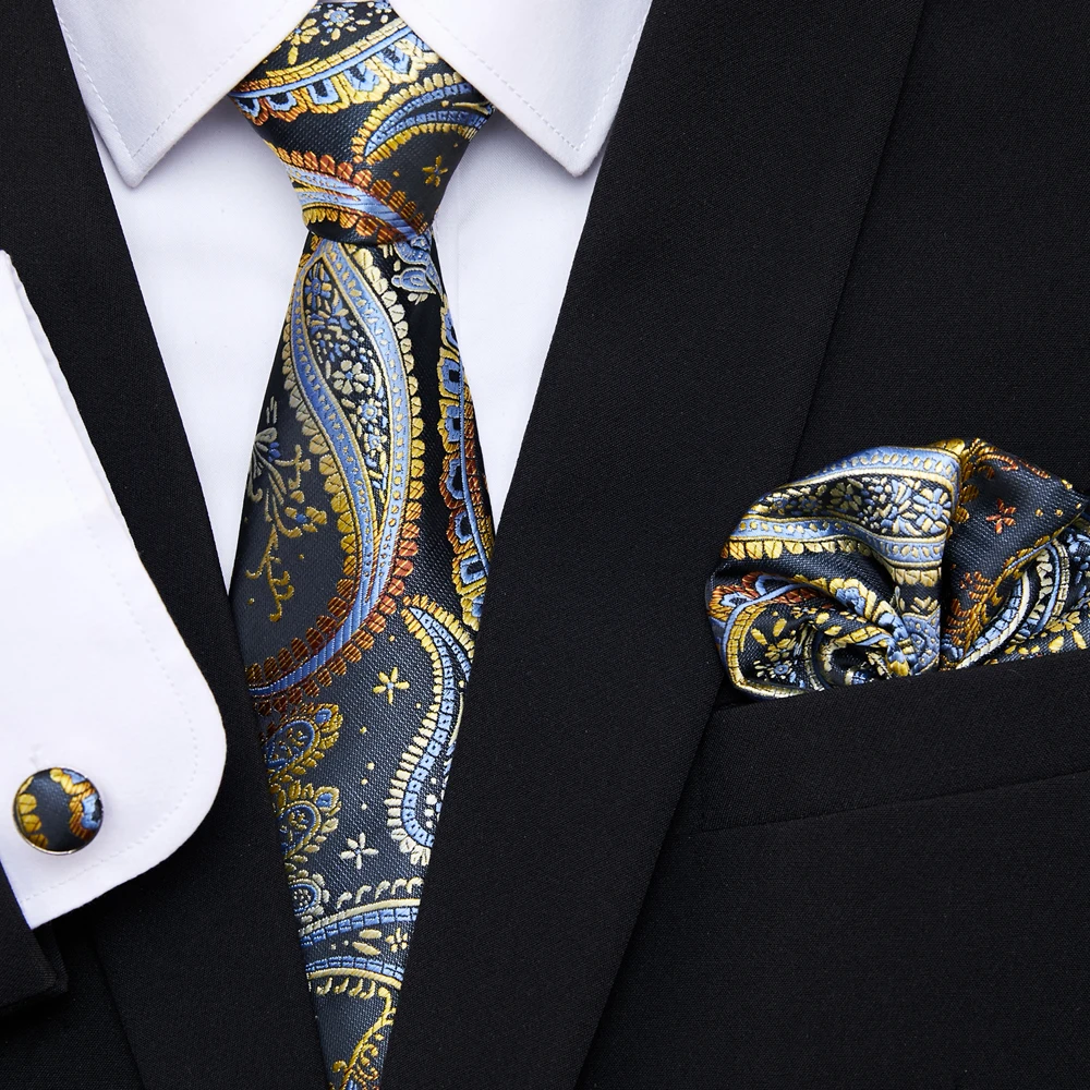 100% шелковый мужской галстук-бабочка, комплект модной одежды Пейсли жаккардовый галстук-бабочка и носовой платок и запонки и зажим, превосходный набор в подарочной коробке, свадебные, деловые, галстук-бабочка
