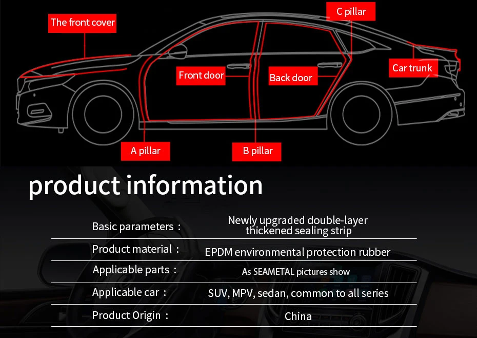 Резиновое уплотнение для дверей автомобиля, автомобильные дверные уплотнения, Двухслойное защитное уплотнение, шумоизоляция для дверных капотов, багажников
