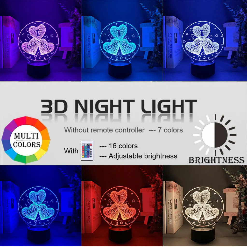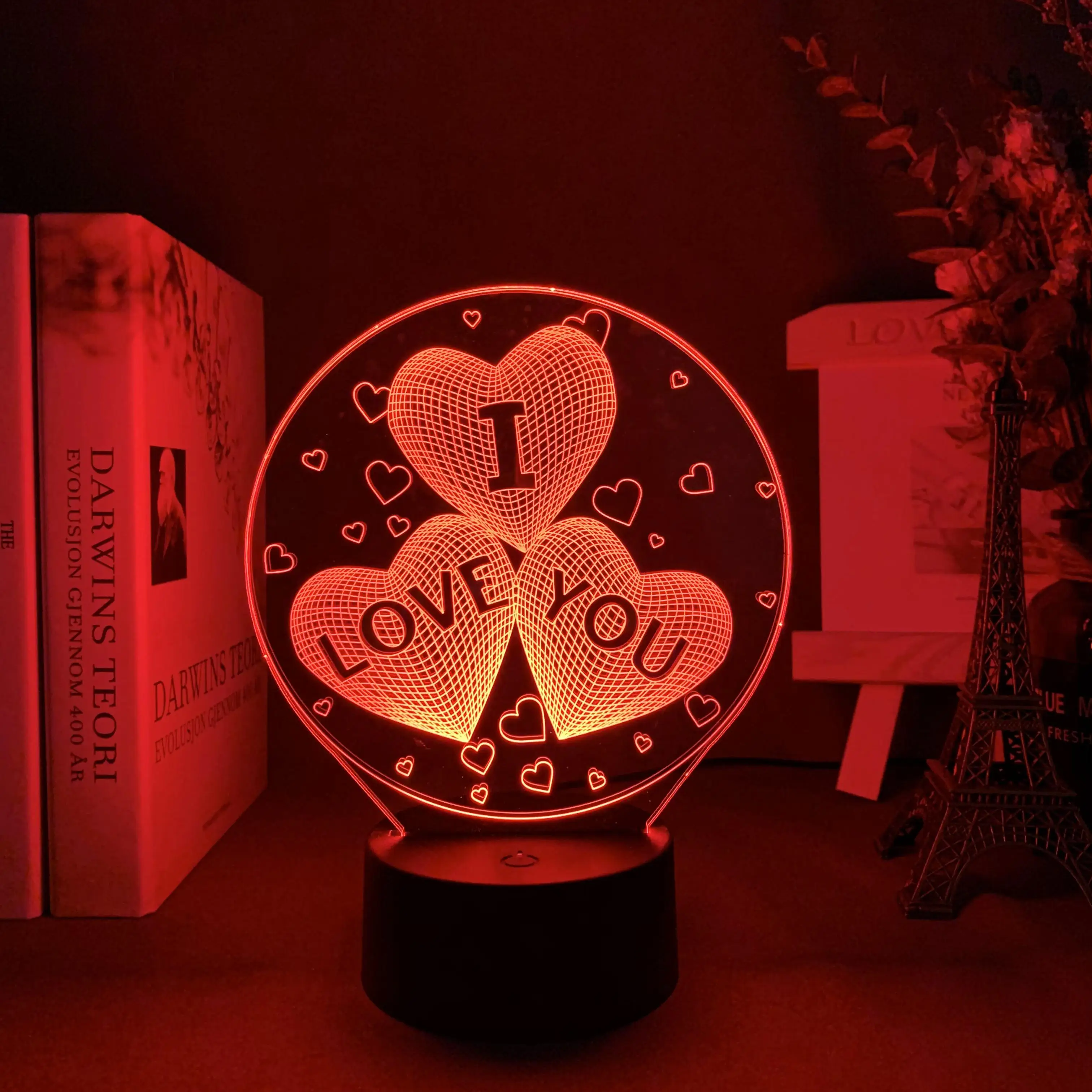 Я люблю тебя три сердца Уникальный детский Ночной светильник для украшения дома Usb Батарея работает лампа vitage Dragon магазин идей Прямая поставка товара