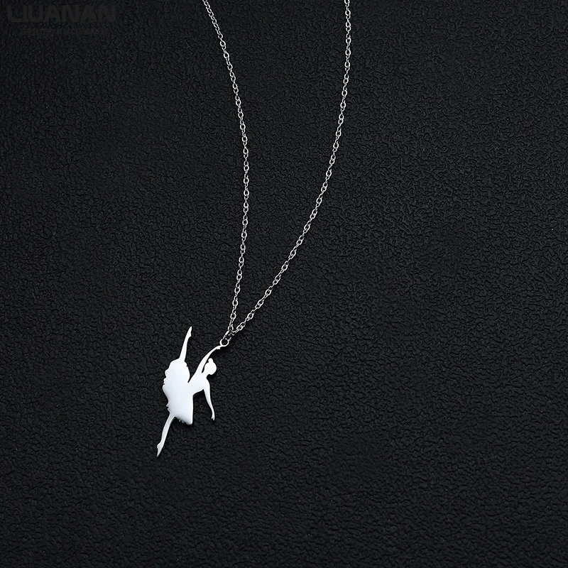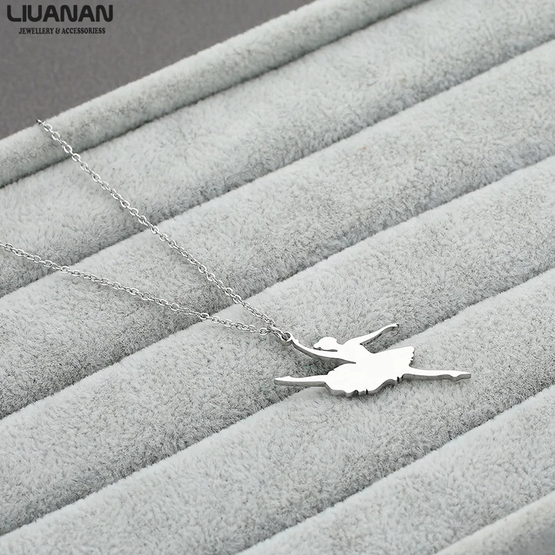 Модное ожерелье с кулоном балерины для женщин, подарок для девушек, колье, ювелирное изделие из нержавеющей стали, серебряный цвет, кулон, ювелирное изделие на день рождения