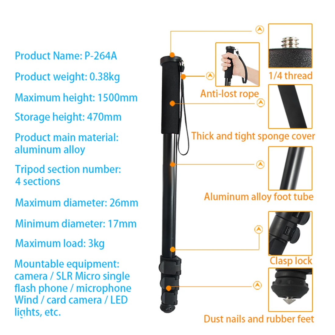 * Клиент должен предоставить сертификат товарного знака/разрешение бренда или указать в заказе:«Заказные товары с логотипом, которые я запросил, предназначены только для личного использования, я обещаю не делать никаких выгодных продаж».В случае нарушения соответствующих положений покупатель несет соответствующую ответственность, которая не имеет ничего общего с продавцом!Портативный монопод Feichao, компактный легкий алюминиевый штатив для камеры, палка для селфи, выдвижная, 1,5 м, для DSLR, видео, смартфона, Шариковая головка, Vlog, профессиональный набор для фотосъемкиМини-шаровая Головка: (можно использовать в комбинации с моноподом)
