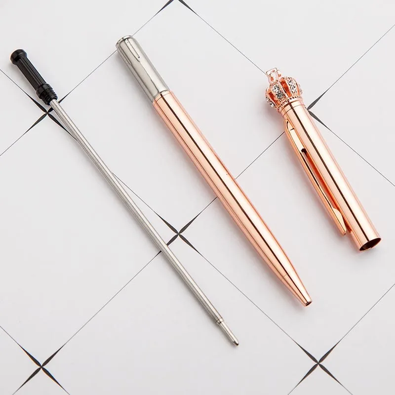 Эллен Брук, 1 шт., красивая блестящая металлическая шариковая ручка с короной и кристаллами, интересные шарики, школьные и офисные канцелярские принадлежности