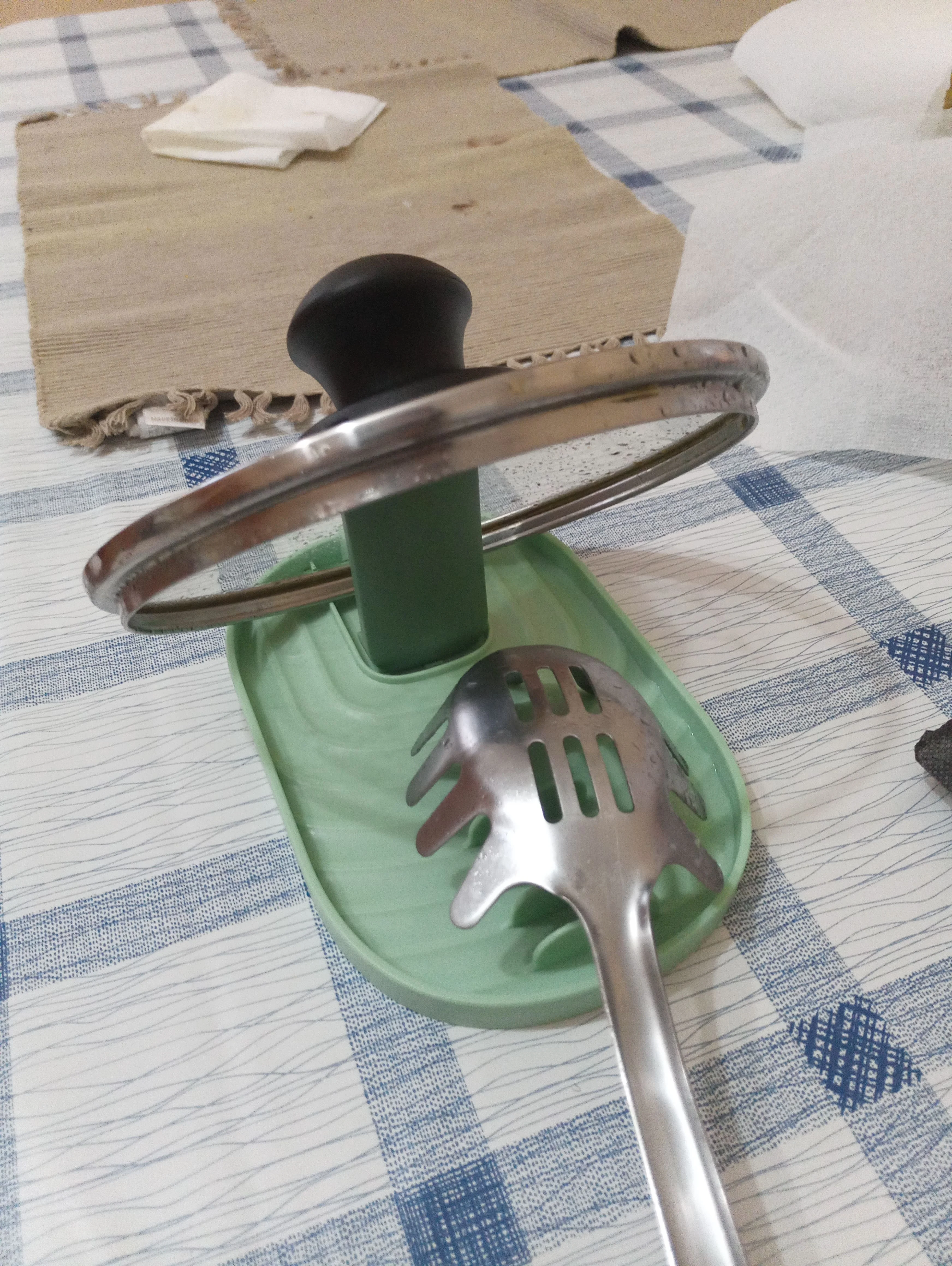 Товар прибыл до предполагаемого времени! Мне всегда было интересно, куда положить ложку и крышку горшка и оставить ее в раковине, и теперь у меня больше нет этой проблемы! Он действительно подходит им. Мне понравилось, и я рекомендую всем его купить! Он равен изображению. Большое спасибо!