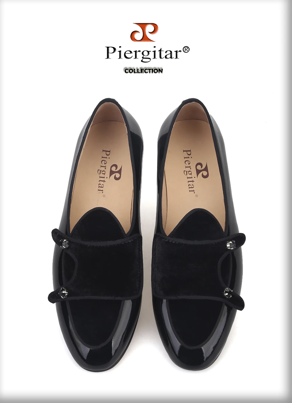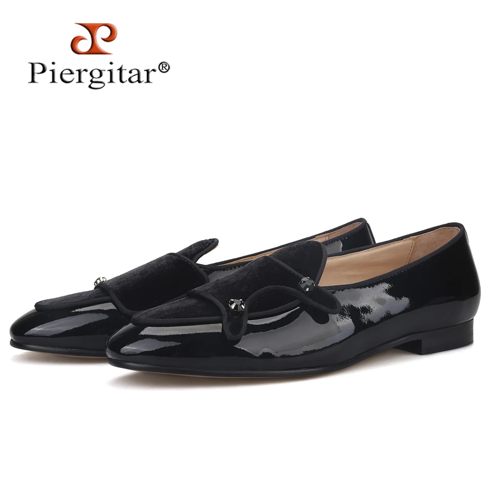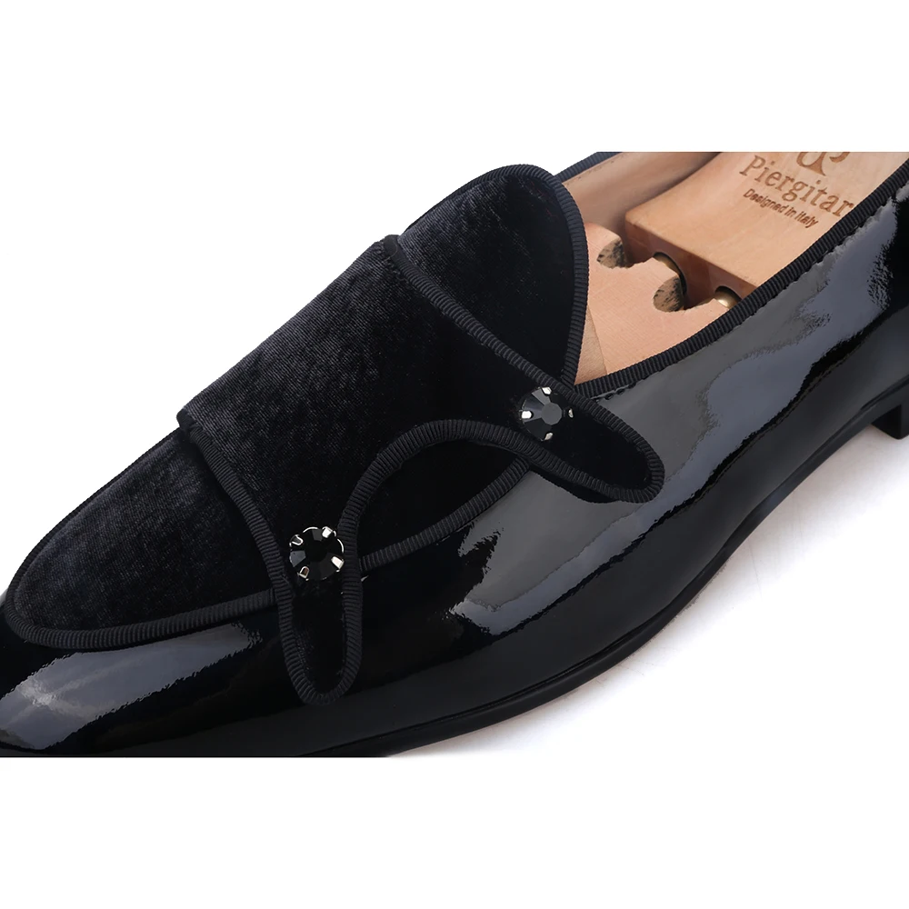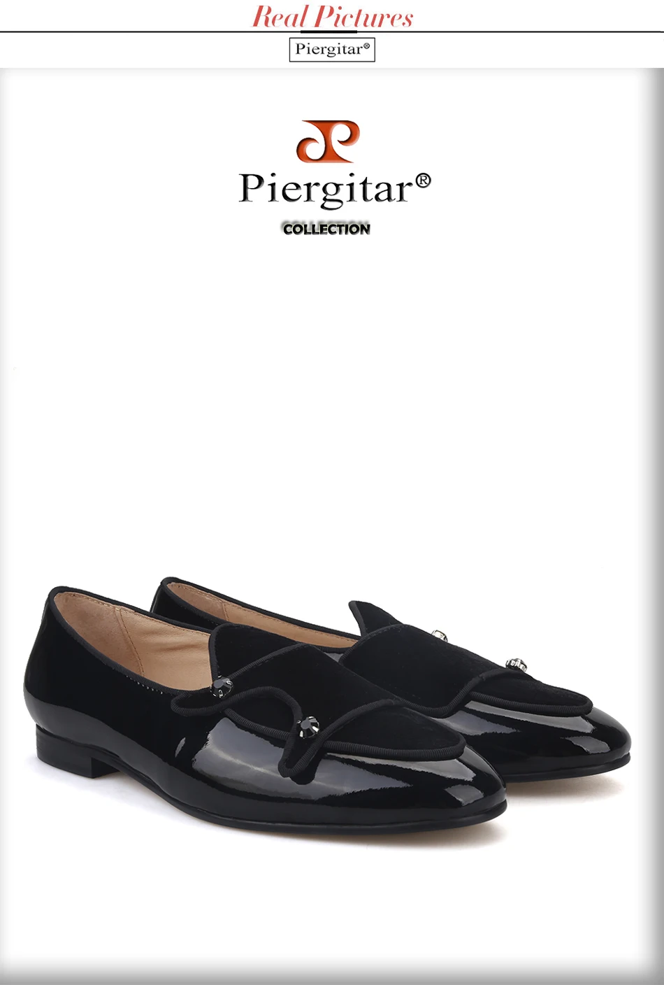 Piergitarчерного цвета из лакированной кожи; Мужские модельные туфли; Стразы пряжка бельгийского лоферы на стул для свадьб и банкета ручной работы в Гуанчжоу