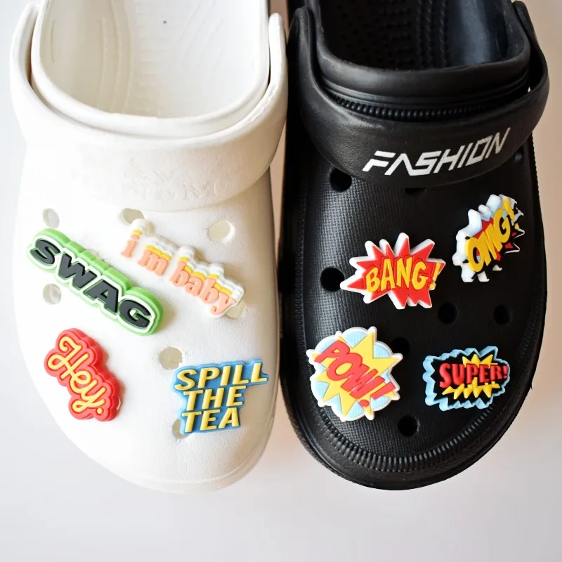 10 шт. модные короткие предложения Популярные фразы OMG Hey Noob Bang Super Love No Way Princess Love взрослые женские мужские сандалии украшения