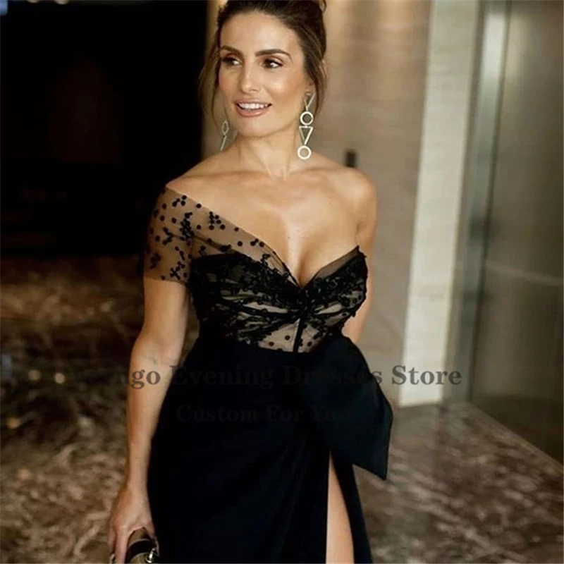 Вечернее платье Verngo на одно плечо, Черное длинное платье с коротким рукавом, с Боковым Разрезом и бантом, современное вечернее платье на заказ