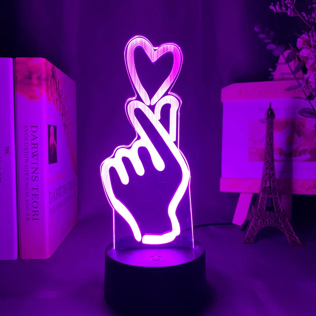 Палец сердце светодиодный Ночной светильник сенсорный Сенсор красочный детский ночной Светильник для Спальня украшение Usb Батарея питание настольная лампа vitage Dragon