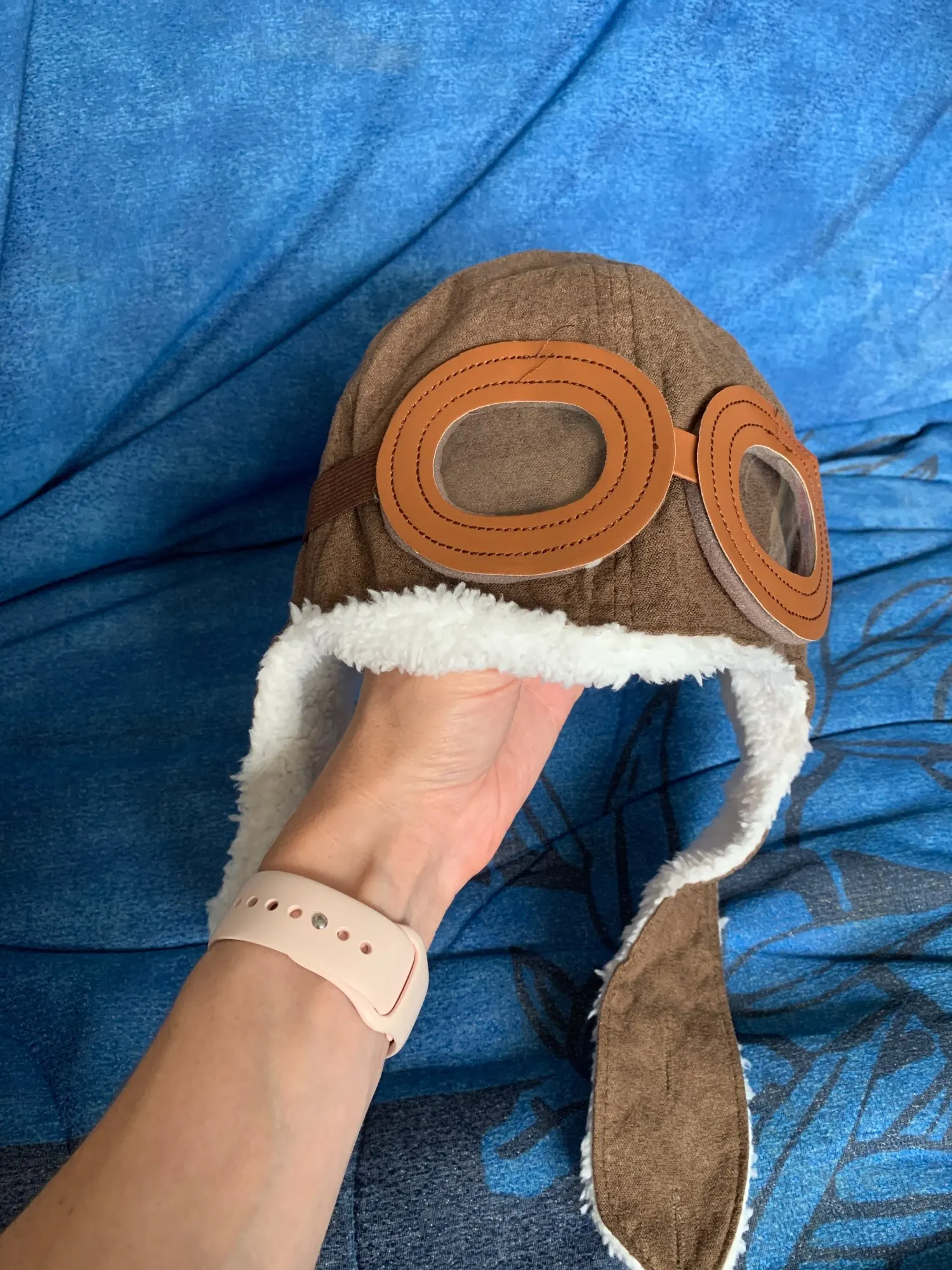 Шапка классная, нитки чуть убрать на очках и огонь. На малыша 1год садится хорошо, не слишком большая, но запас конечно есть. Нам для фотосессии, поэтому не критично. Сзади по низу собрана на резинку, поэтому удачно садится на малыша и на ребёнка постарше. Доставка ужас, но все по вине нашей почты, отправили на следующий же день после заказа, но в итоге посылка шла до меня 2 месяца. Если заказываете к конкретному мероприятию на дату, лучше сильно заранее, чтоб успело дойти.