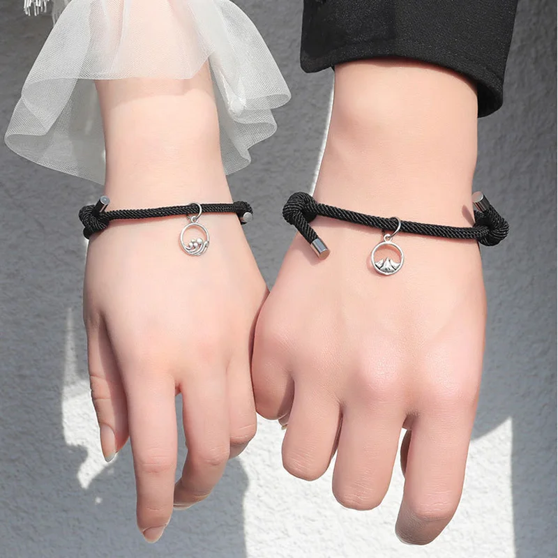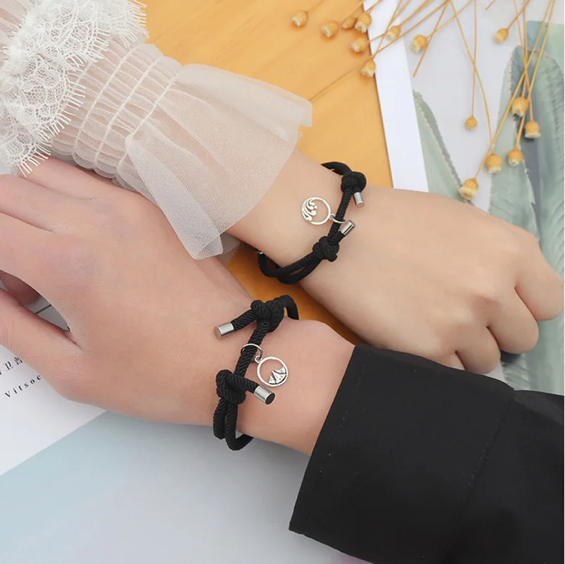 Браслеты на магните для влюбленных пар, ювелирные украшения на длинные расстояния для любящего друга, веревочная цепочка с подвеской, подарок на день Святого Валентина, 2 шт.