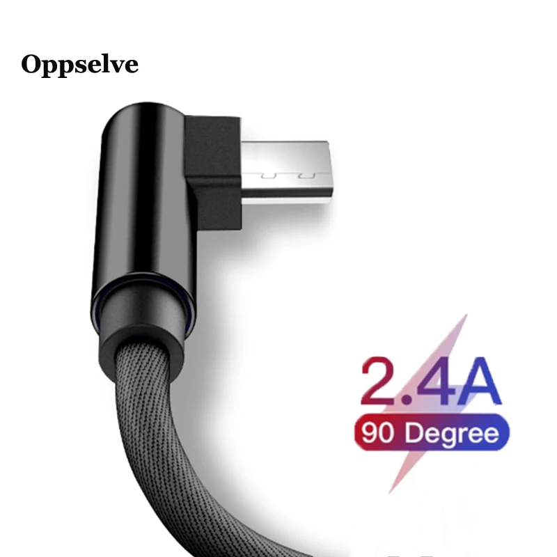 Oppselve 1 м 2 м кабель Micro USB для Xiaomi Redmi Note 5 Pro 4 90 градусов Micro USB кабель для зарядки и передачи данных для Samsung A8 мобильный телефон