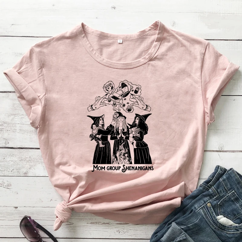 Футболка женская Witchy Mom Group, 100% хлопок, модный топ с графическим рисунком для Хэллоуина, праздников, забавная жизнь, подарок для мамы