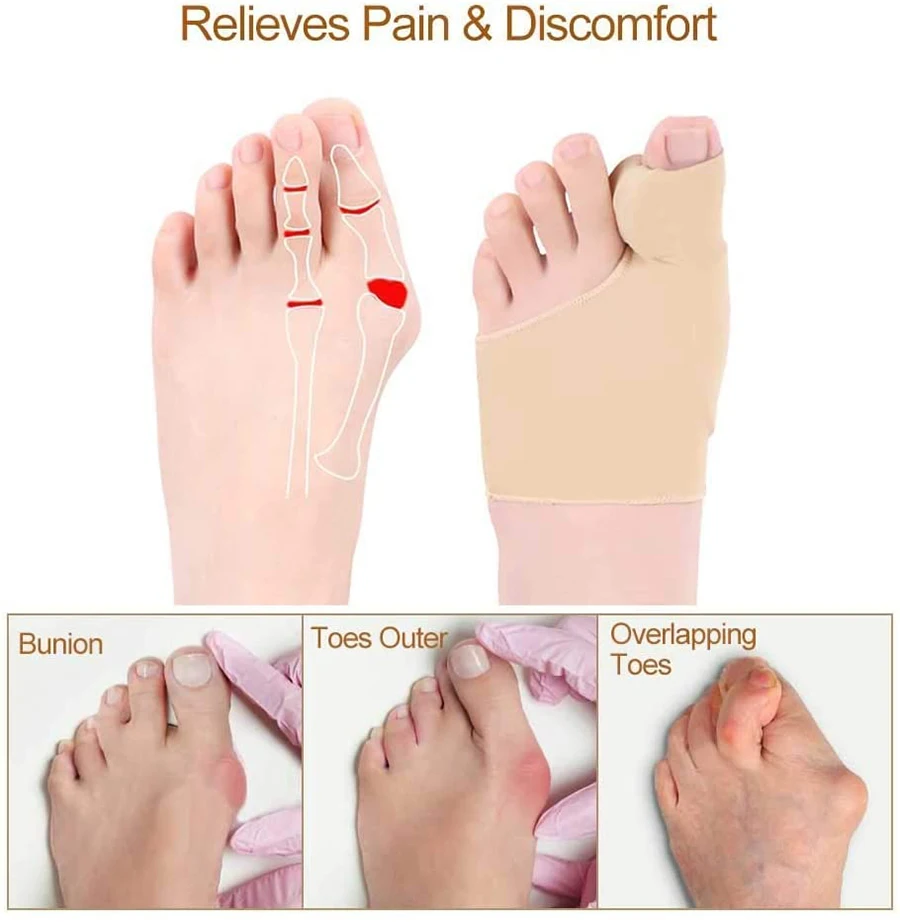 1: защищает соединение, облегчает боль большого пальца2: Мягкий гель уменьшает трение между пальцами и обувью3: комфортная кость вальгусной деформации и мозолей4: гибкая ткань подходит для большинства ног