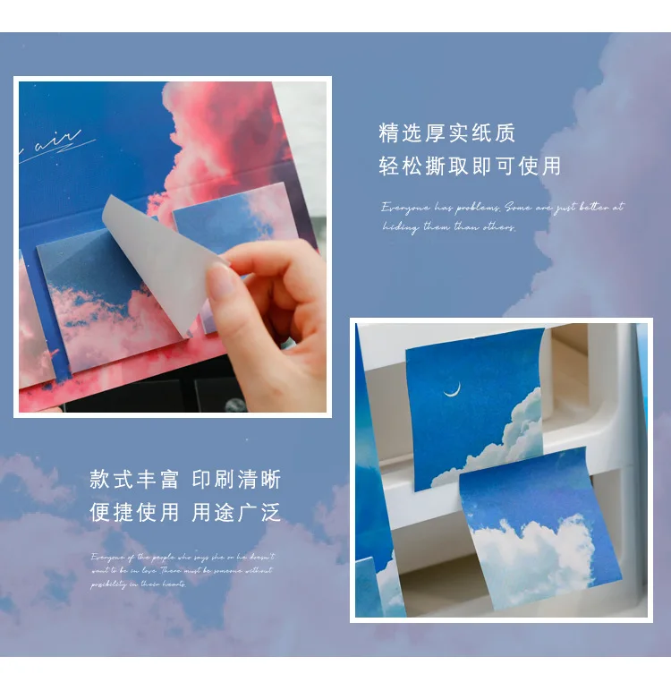 60 листов, самоклеящиеся Блокноты с изображением неба и облака