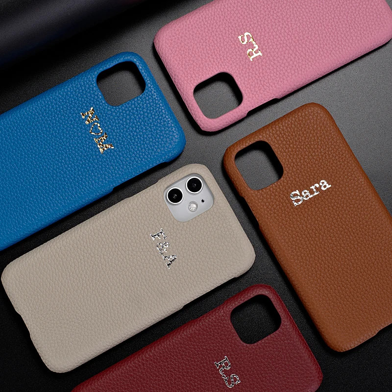 Custom Pebble Grain Genuine Leather Luxury Gold Initial Name
