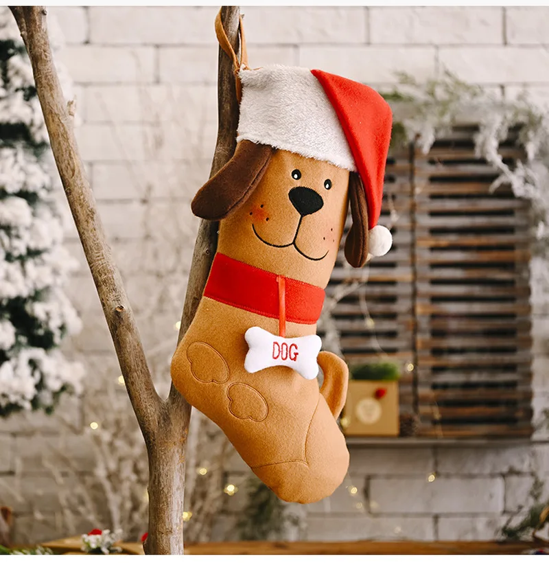 2021 новогодние милые рождественские чулки с собакой, подвеска в виде кости, камин, Детские Декоративные носки