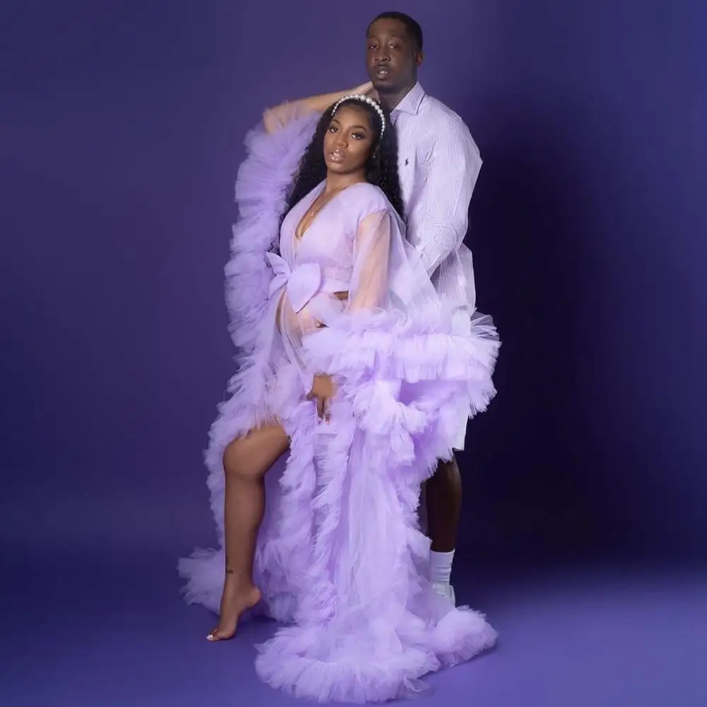 Тюлевые платья лавандового цвета для беременных женщин пышные длинные халаты Формальные вечерние Халаты для фотосессии бальное платье халат на заказ
