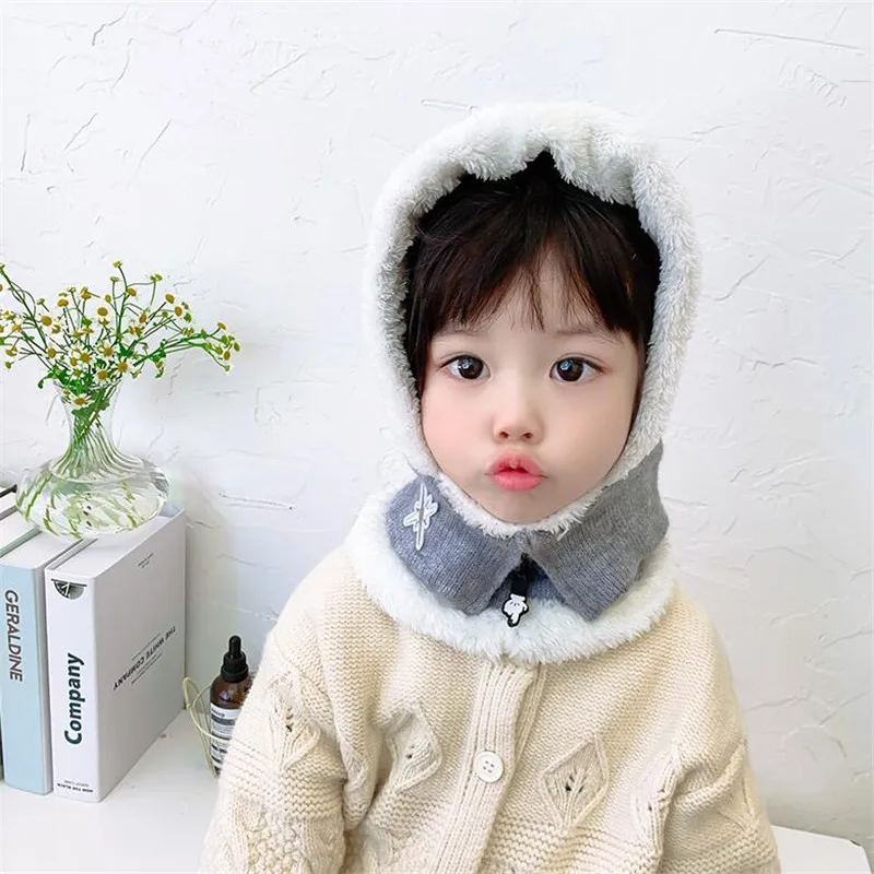 Детская шерстяная шапка-шарф, теплая вязаная шапка в Корейском стил...