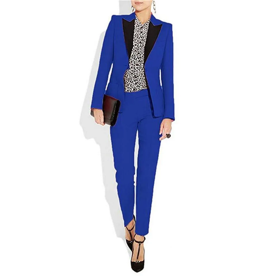 Женские Брючные костюмы больших размеров, деловые брючные костюмы, блейзер и брюки для работы, костюм Королевского синего цвета для свадебной вечеринки