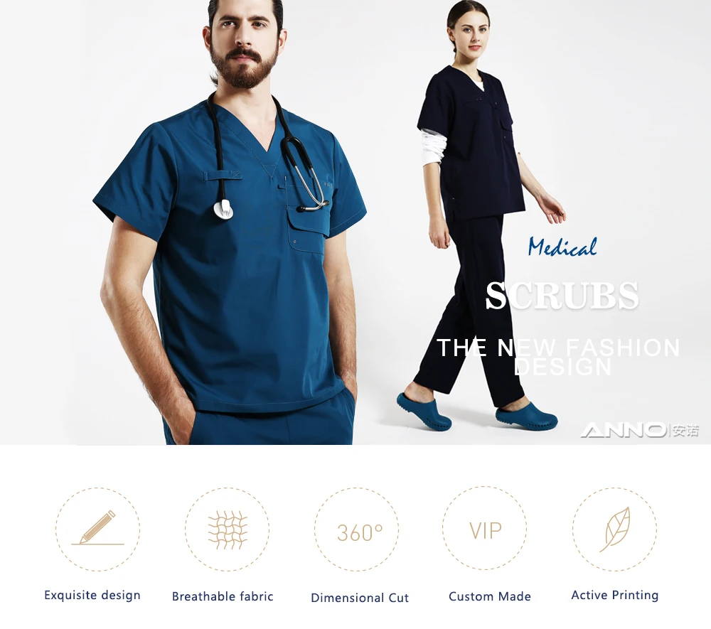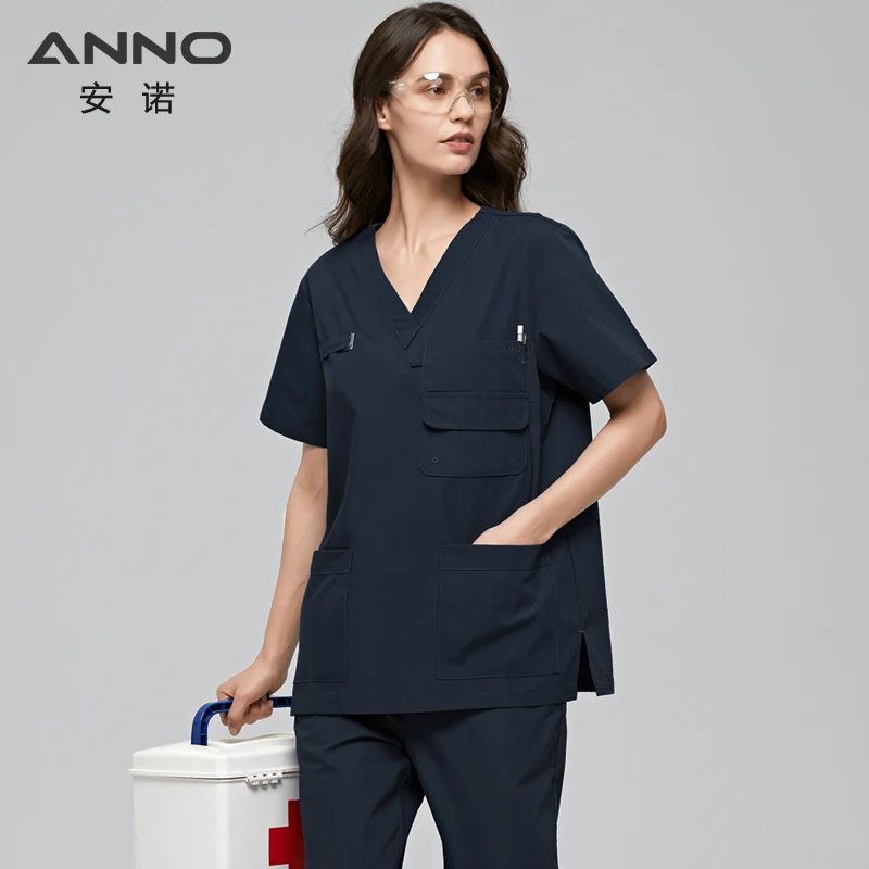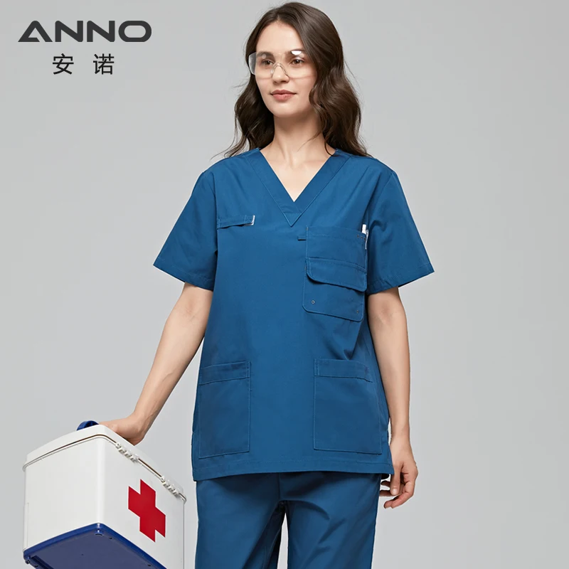 Униформа ANNO для мужчин и женщин, набор скрабов с несколькими карманами, больничная классическая форма, одежда для кормления