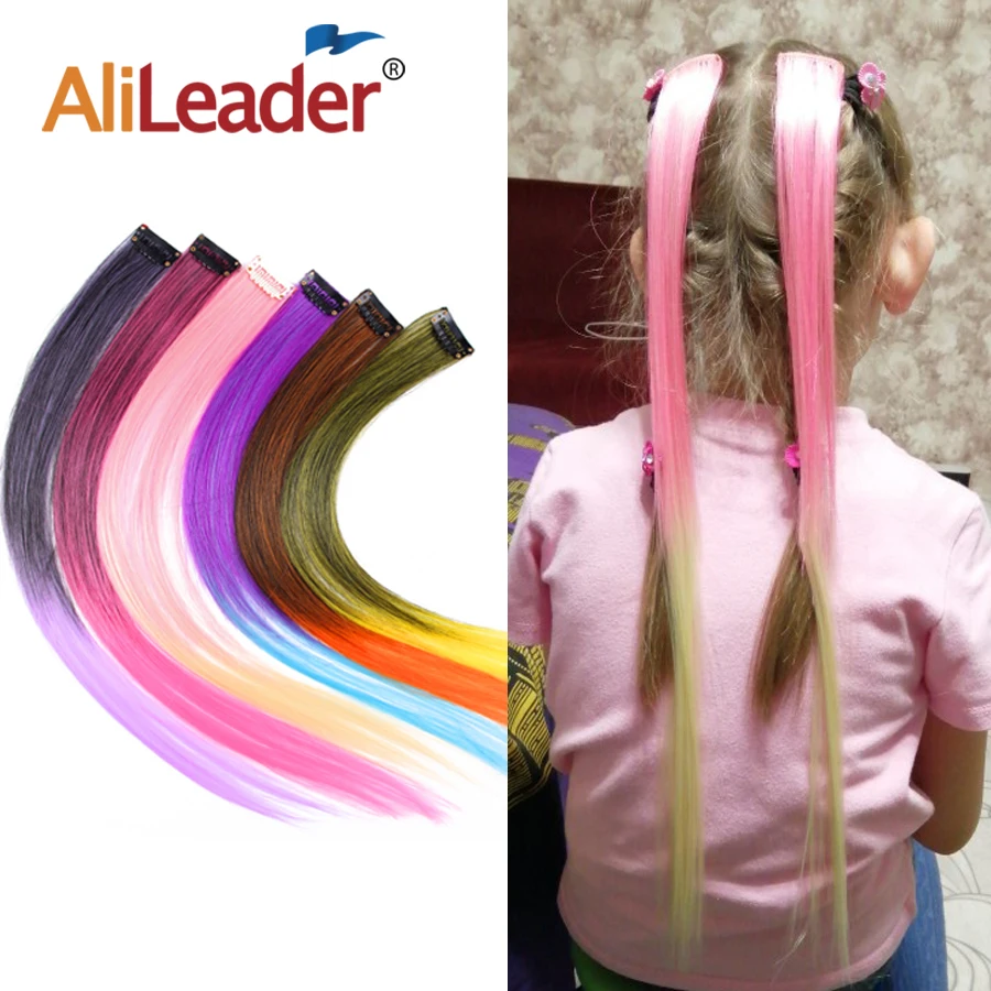 Alileader новые накладные волосы на заколках, один кусок, 50 см длинные прямые волосы для наращивания, Омбре розовые синтетические накладные волосы на заколках