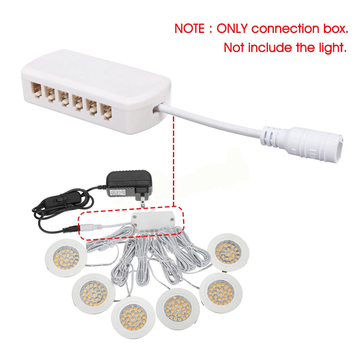 Состояние на 100% абсолютно новыйНазвание продукта: коробка для подключения светаМатериал: пластикЦвет: белыйФункция: светодиодный светильник для шкафа с 12 отверстиямиПримечание: только Соединительная коробка. Светильник комплект не входит.Посылка: