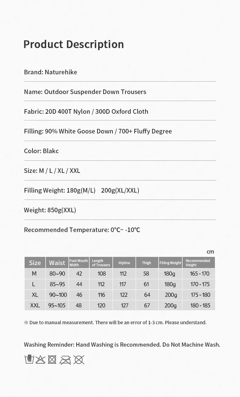 Naturehike Outdoor Winter Suspender Down Pants 90% White Goose Down...