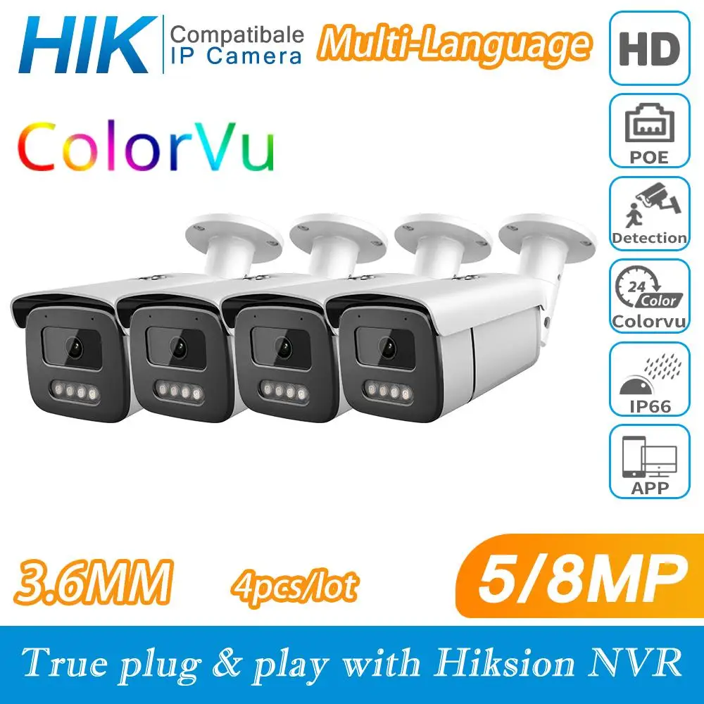 Hikvision, совместимая с 5-мегапиксельной POE IP-камерой, полноценная цветная 8-мегапиксельная сетевая IPC цветная Vu Hikvision протоcl для Hikvision NVR, 4 шт.