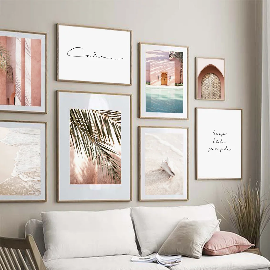 Пальмовый лист Розовая тень золотая дверь пляжная раковина скандинавский плакат настенный художественный Принт Холст настенные картины для декора гостиной