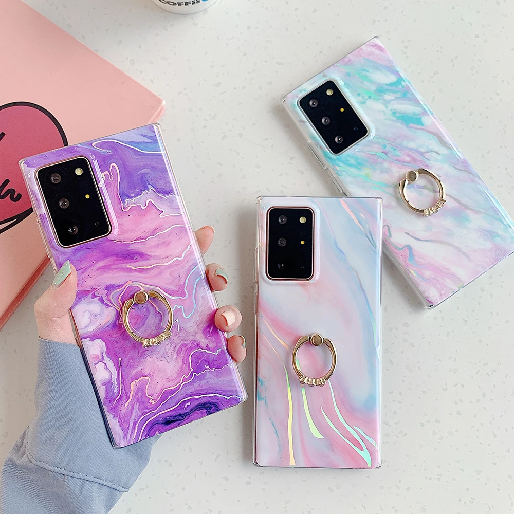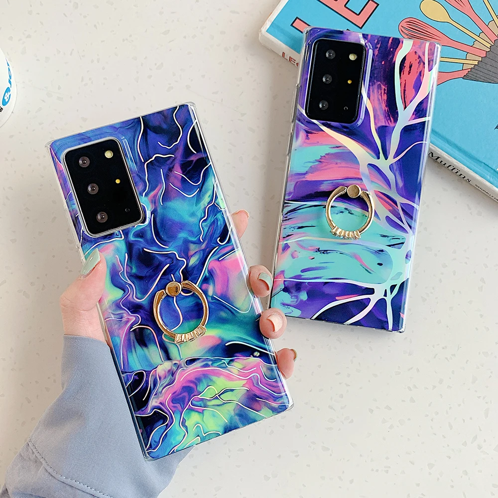 Цветной мраморный чехол для телефона Samsung S22 Ultra S21 S20 Plus A52 A72 A53 A51 A71 A21S Note 20, ультрамягкий чехол с кольцом-держателем