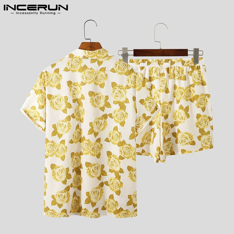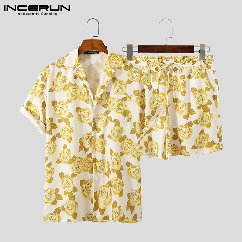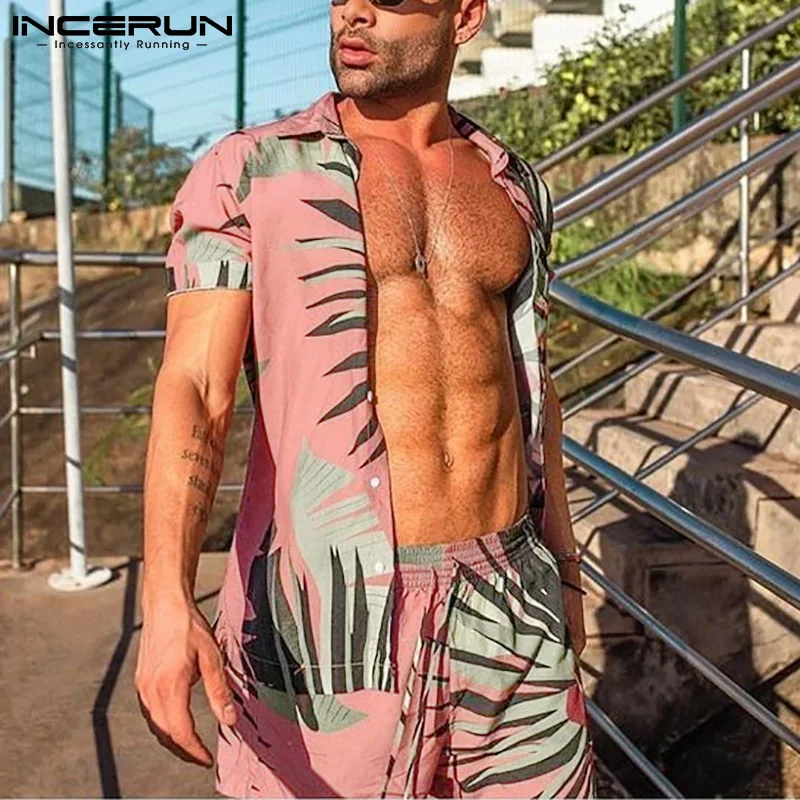Гавайский костюм INCERUN мужской, Пляжная рубашка на пуговицах, шорты с принтом, повседневный костюм из 2 предметов, S-5XL, лето 2021