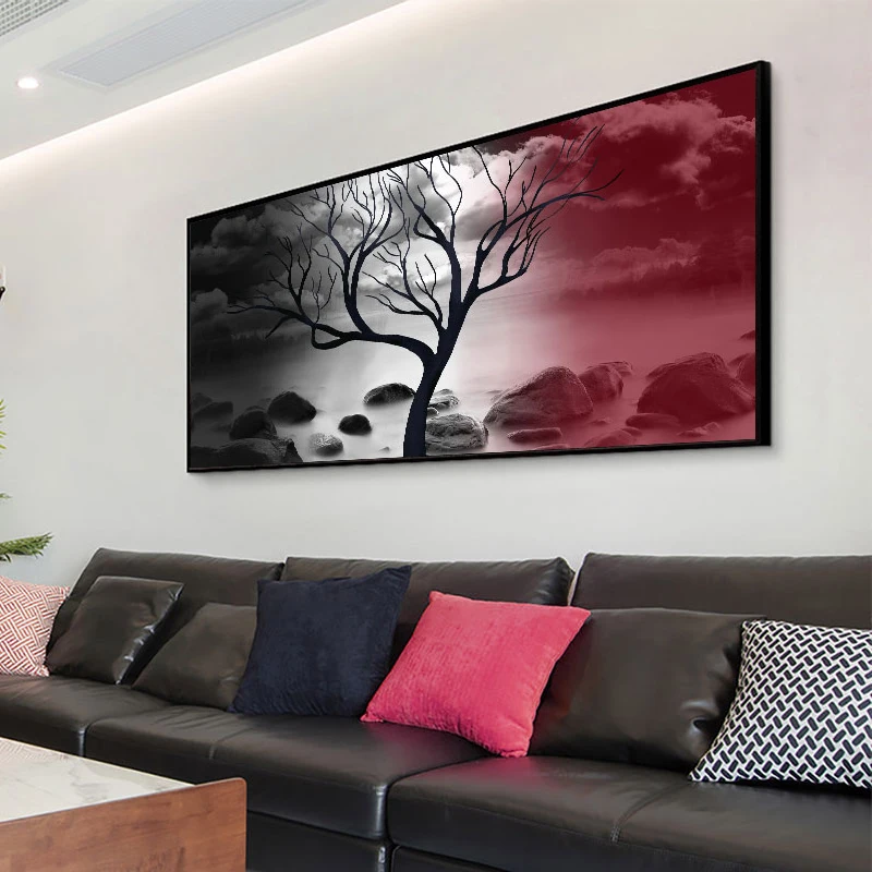 Современная живопись пейзаж дерево на озере на холсте Печать скандинавский плакат настенная художественная картина для гостиной домашний декор Безрамное