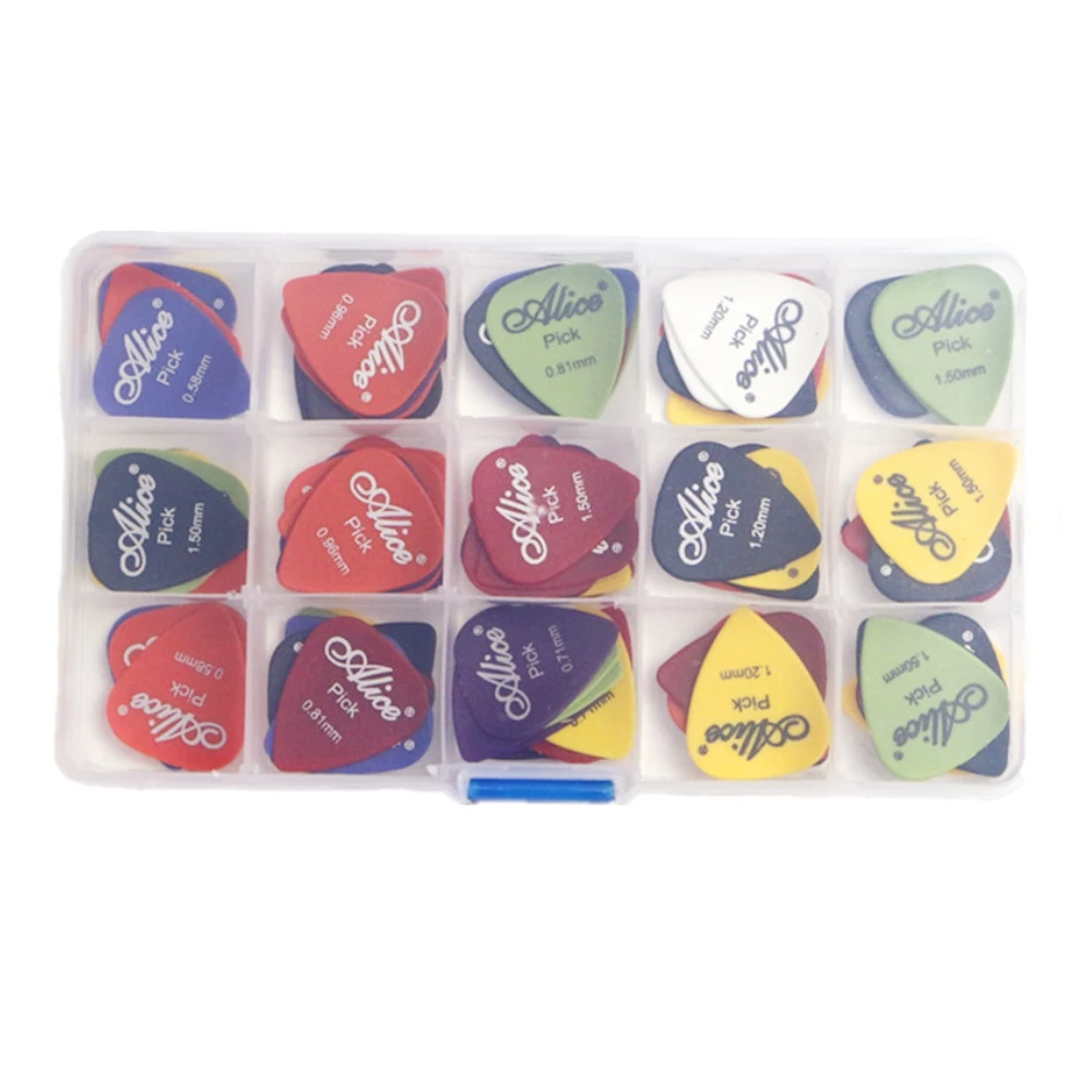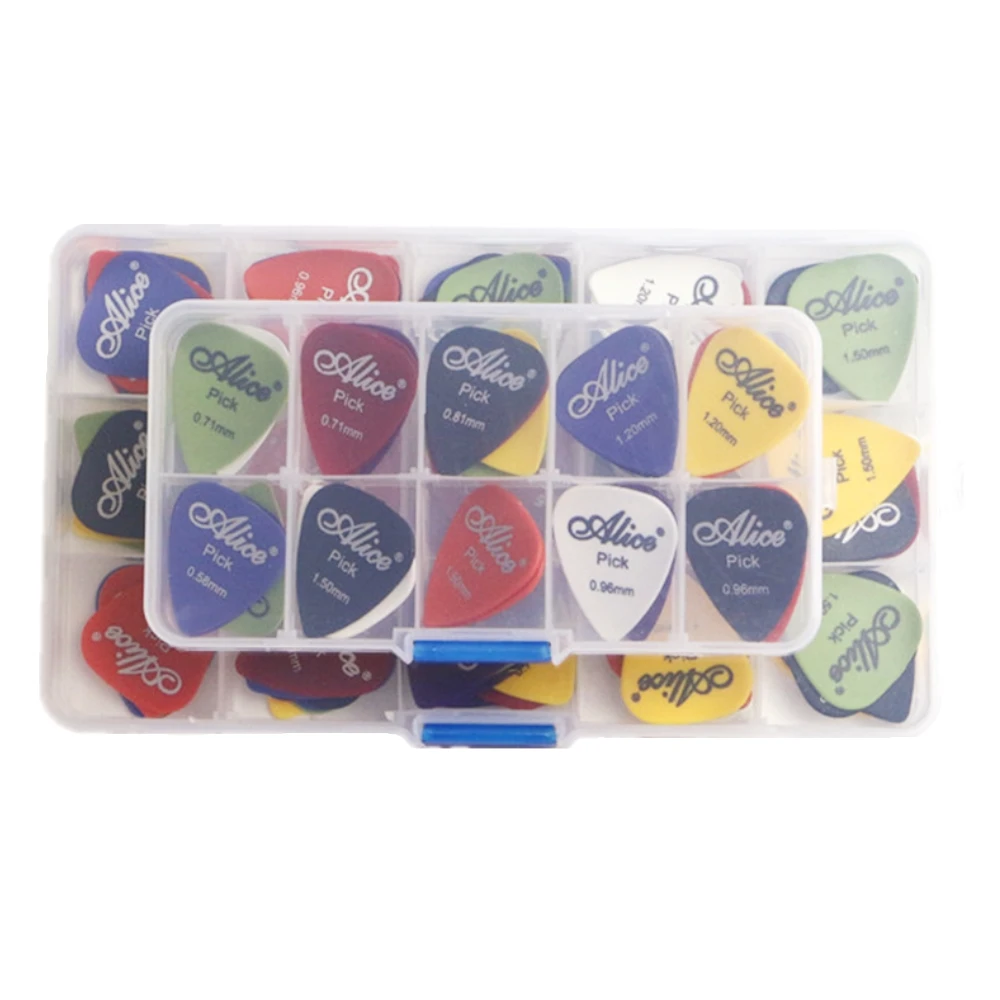 Медиатор для гитары, 24304050 шт., 1 коробка, чехол, Alice, акустический, электрический, бас, медиатор, музыкальный инструмент, толщина микс 0,58-1,5