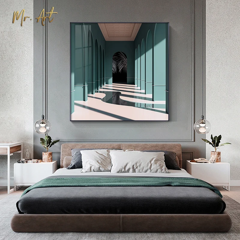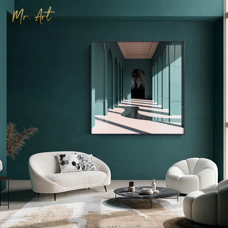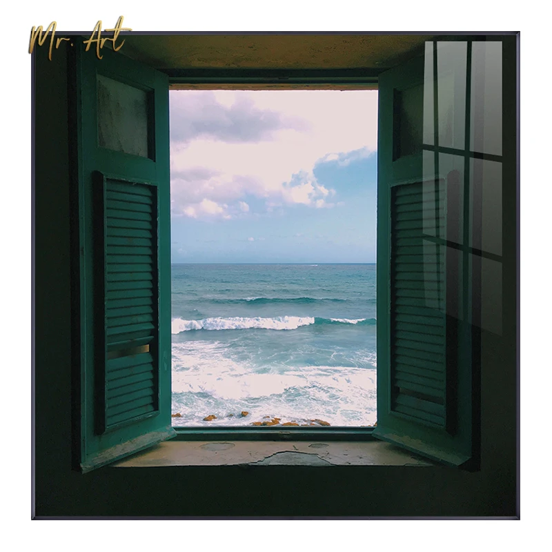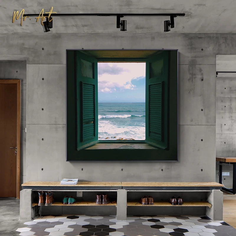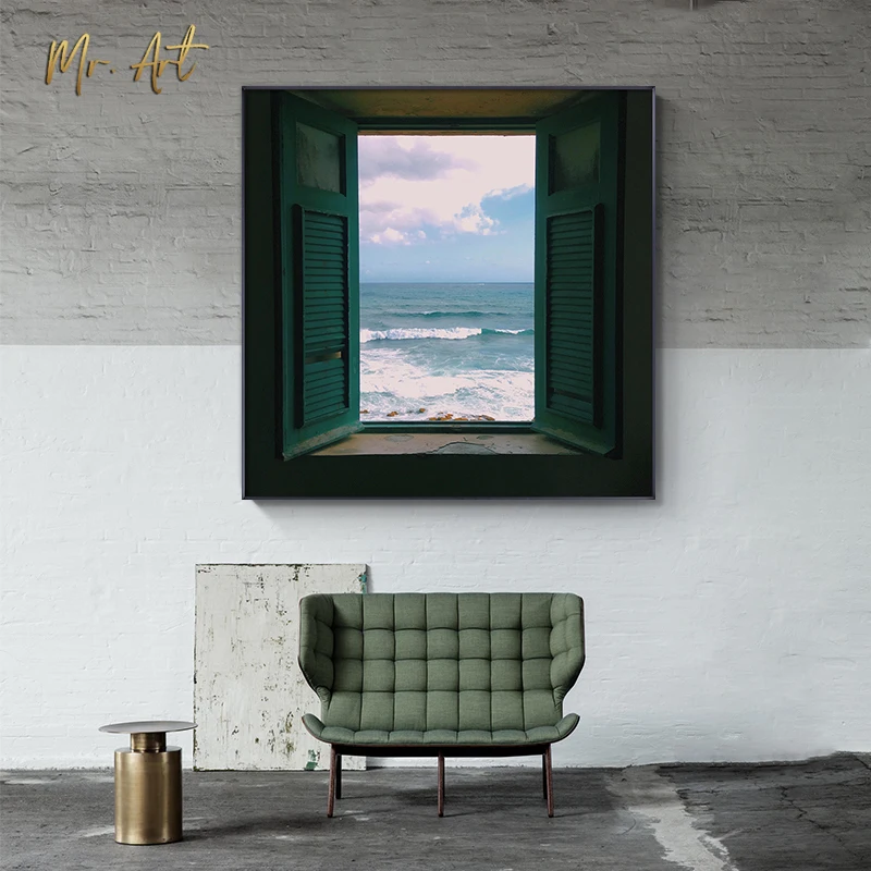 Современная Картина на холсте с окном и принтом, квадратный пейзаж,...