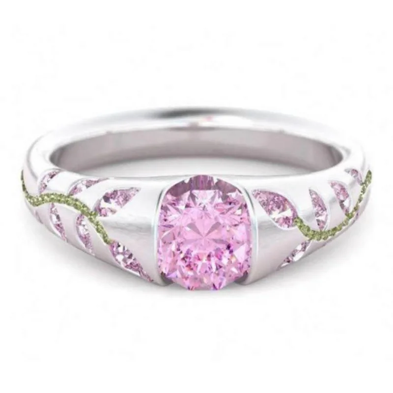 Carofeez Романтический КрасныйРозовый кристалл кольца со стразами для женщин аксессуары ювелирные изделия обручальное кольцо Изысканные женские кольца с листьями