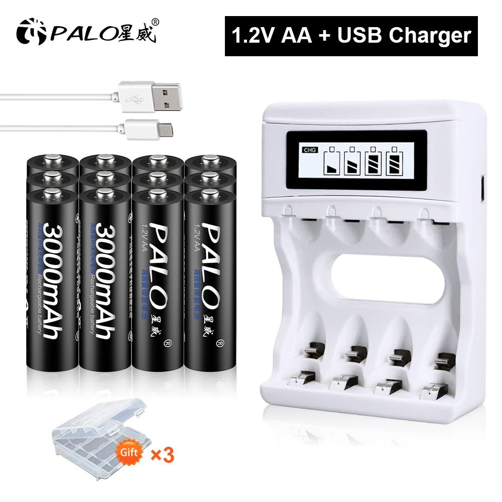 Аккумуляторы PALO, 1,2 в, AA, 3000 мА ч, Ni-MH, с ЖК-дисплеем