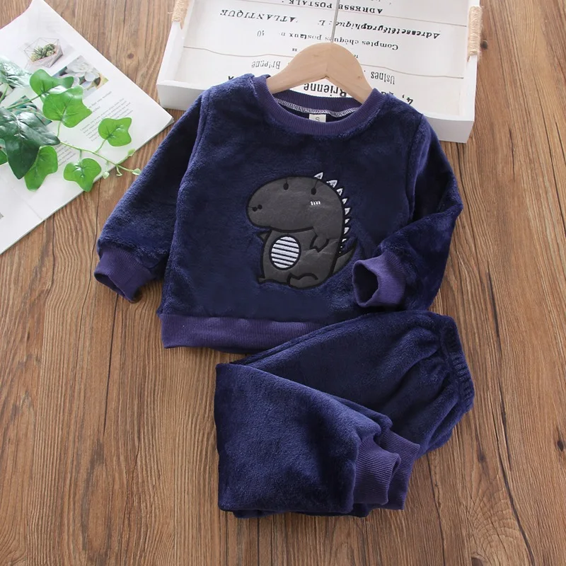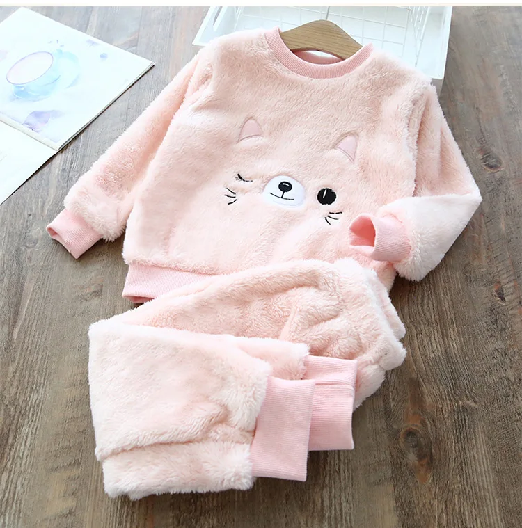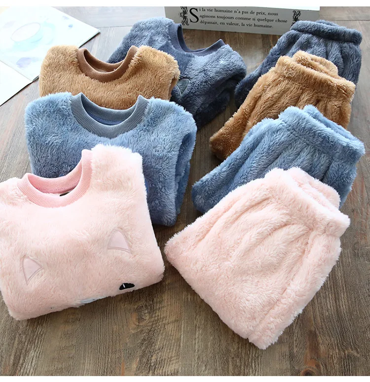 Детская одежда Новые осенне-зимние детские пижамы для девочек, утепленные пижамы теплые спальные костюмы для мальчиков Модный спортивный костюм