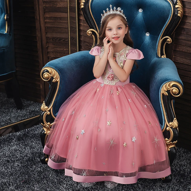 Летнее бальное платье принцессы с цветами для маленьких девочек, пл...