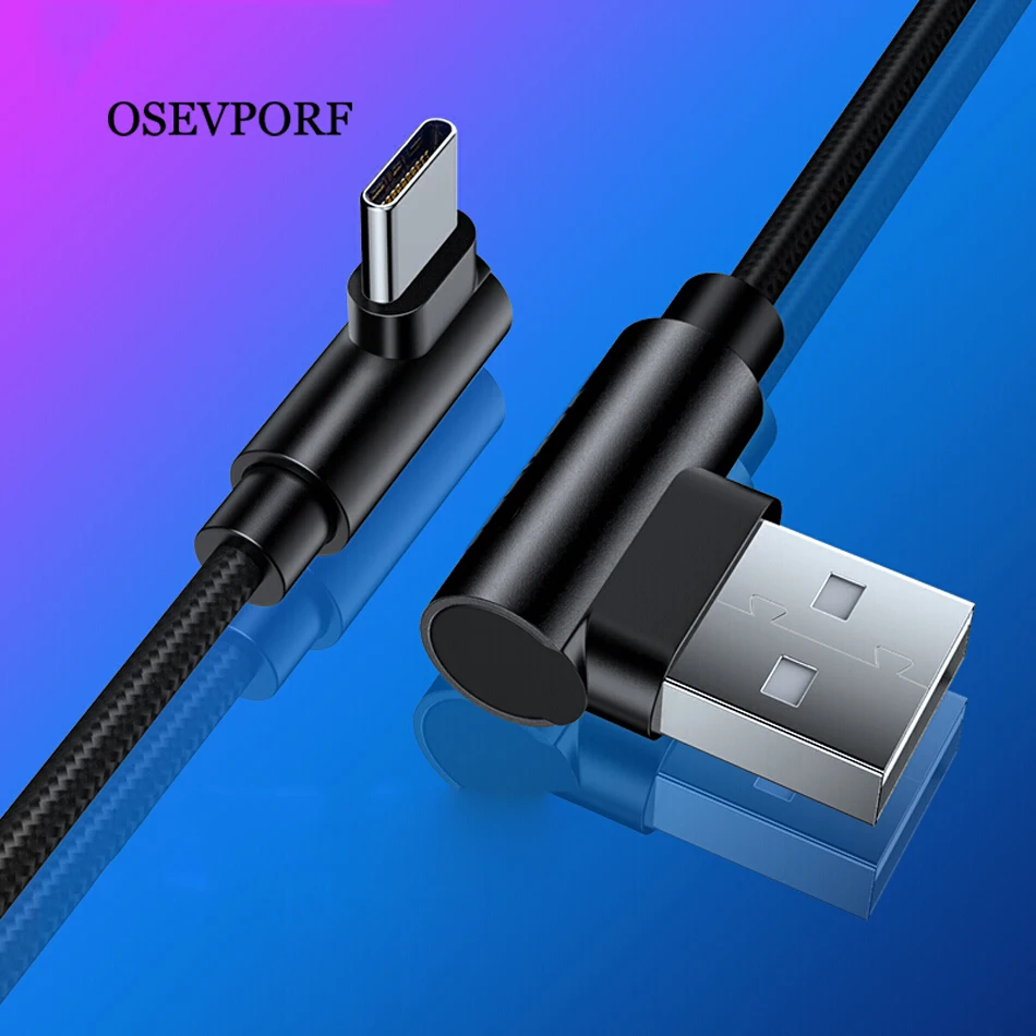Кабель для быстрой зарядки, Нейлоновый, Type-C, 3 м, для Huawei, Xiaomi Redmi Oneplus, USBC, кабель для синхронизации данных и зарядки, провод под 90 градусов
