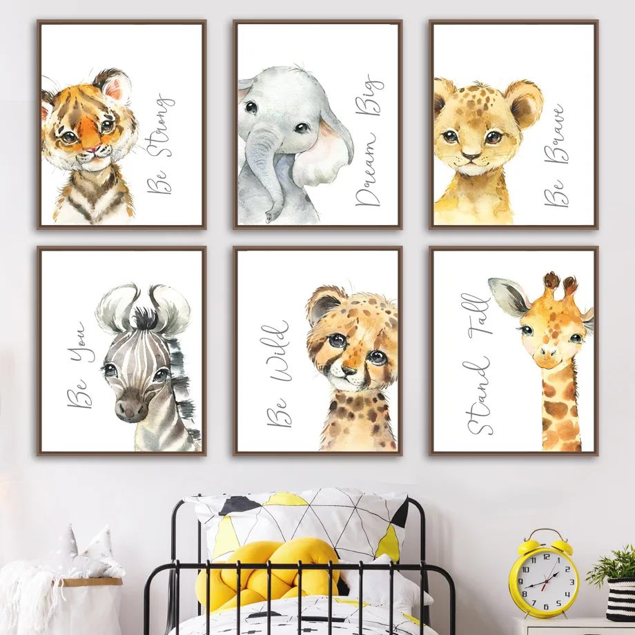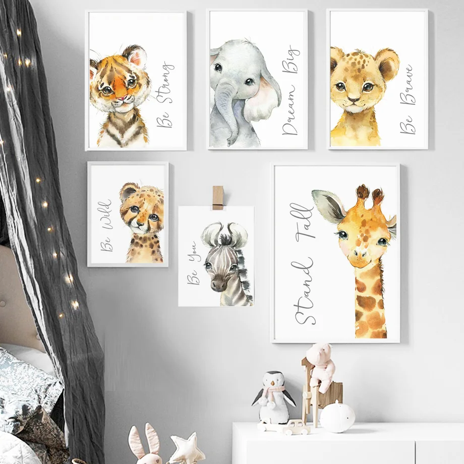 Постеры и принты в скандинавском стиле с Львом, слоном, жирафом, зеброй, тигром, милые животные, настенная Картина на холсте, настенные картины, декор для детской комнаты