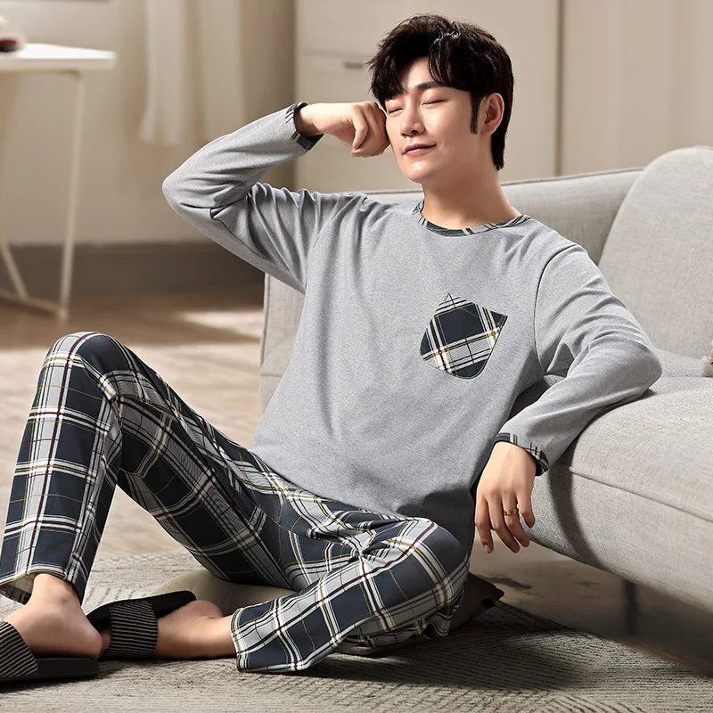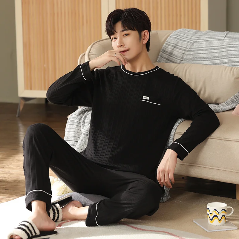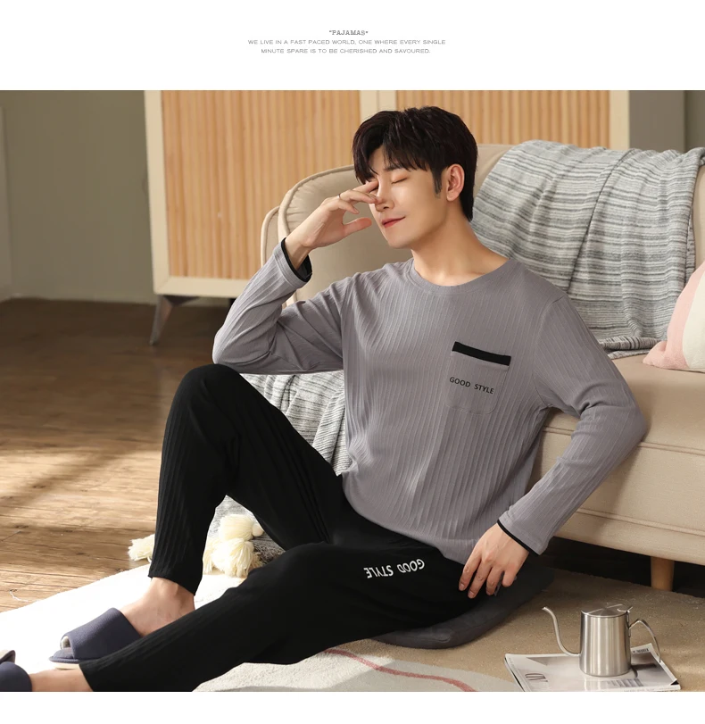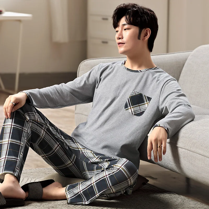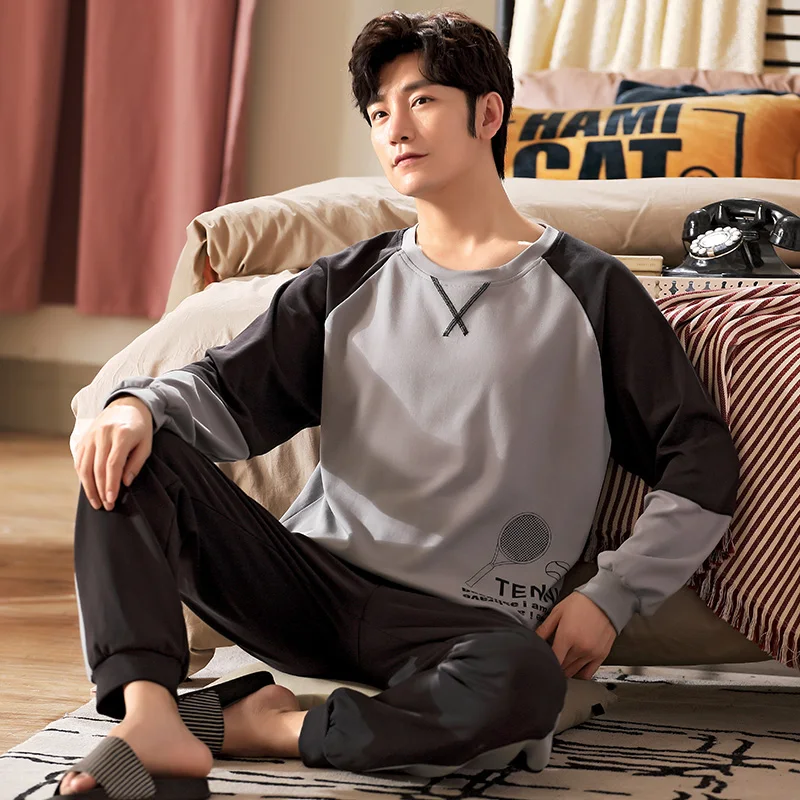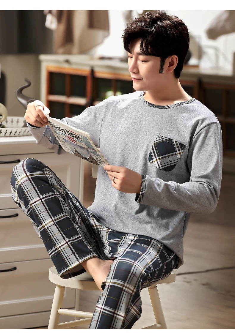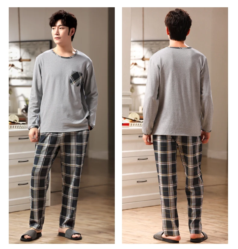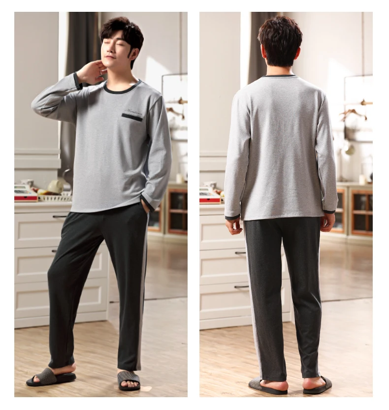 Пижама из чистого хлопка, Мужская пижама с длинным рукавом, Мужская одежда для сна, Повседневная Ночная рубашка, одежда для сна, мужской Пижамный костюм