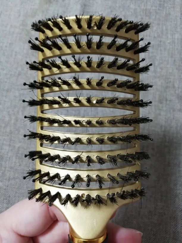 ТО ЧТО РАСЧЕСКА ИЗОГНУТА - ЭТО ОЧЕНЬ КРУТО! НО! для моей шевелюлы длинной 85 см очень жидкая щетина и мягкие зубцы. для дочек шикардос!