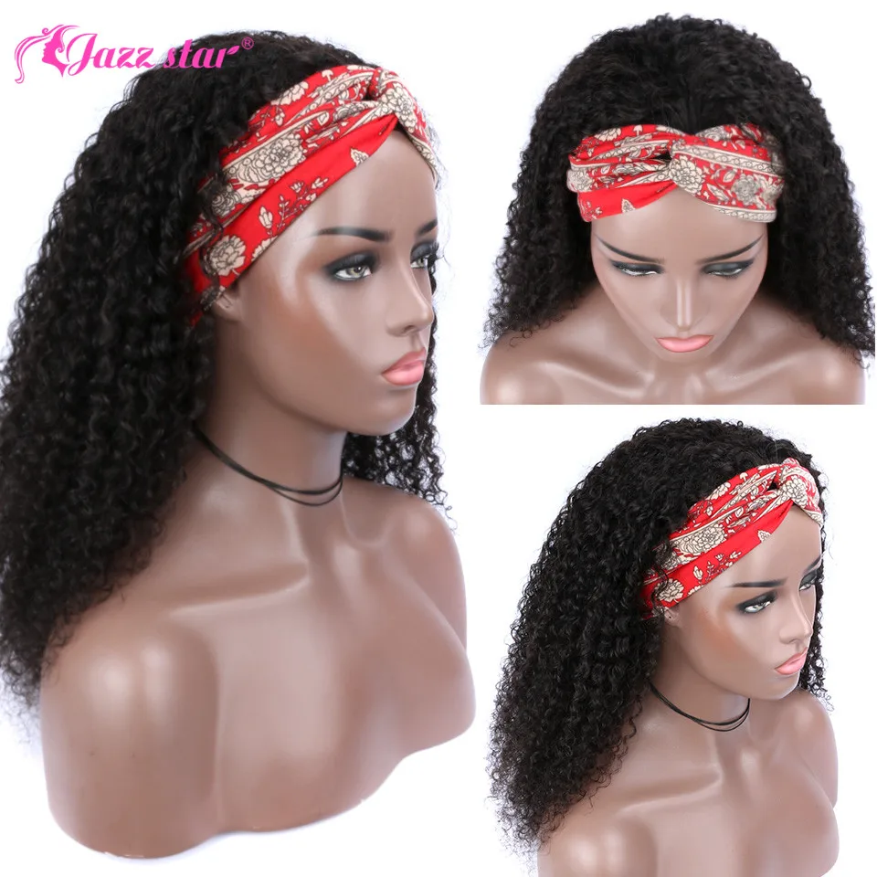 Парик из натуральных бразильских кудрявых волос, парик с головной повязкой, без клея, для женщин