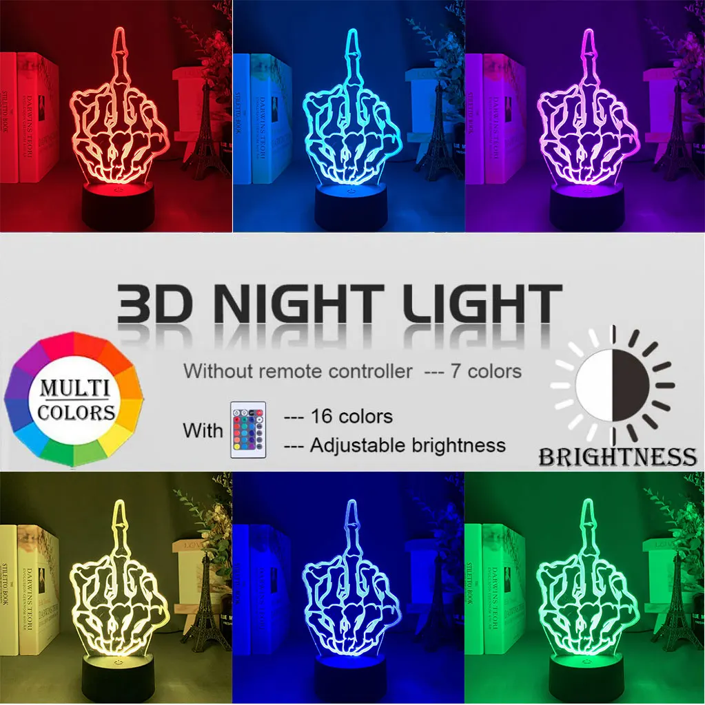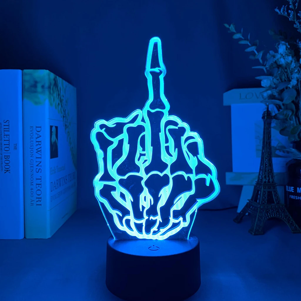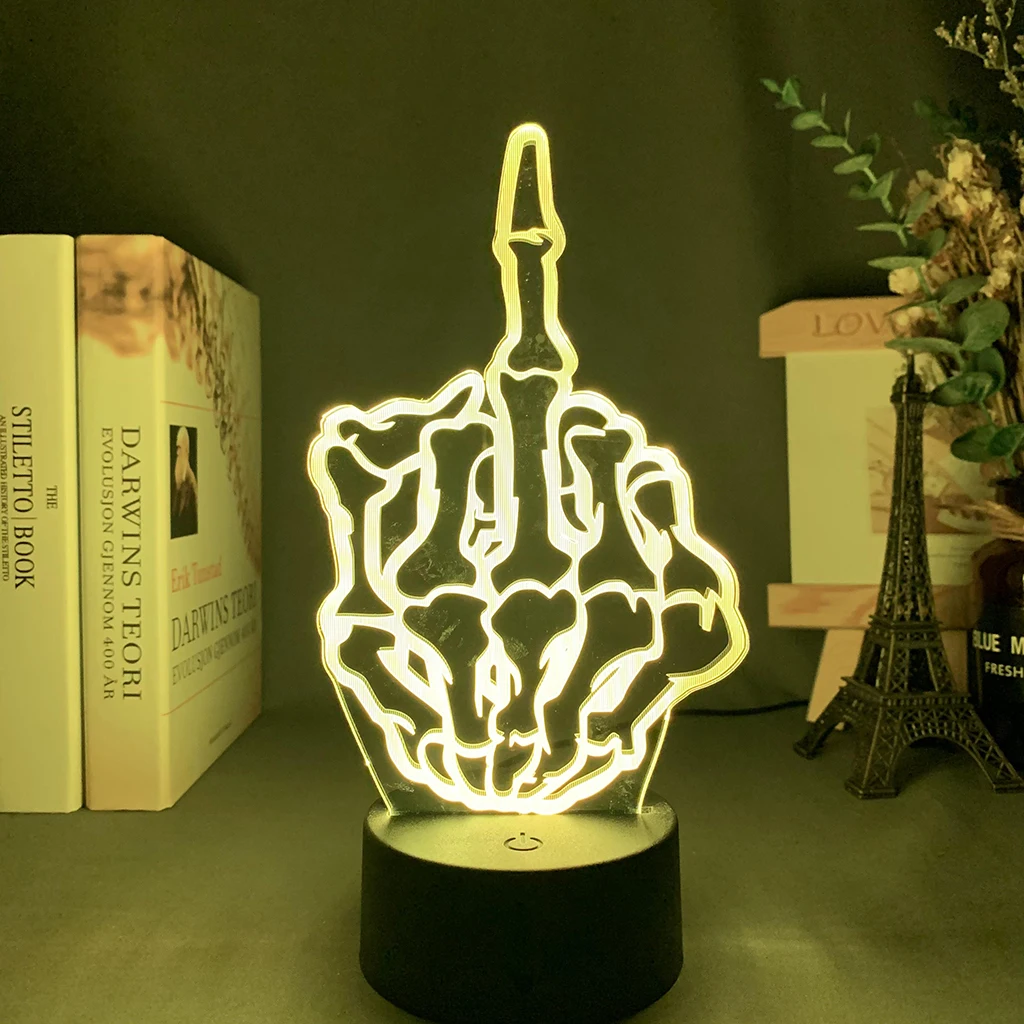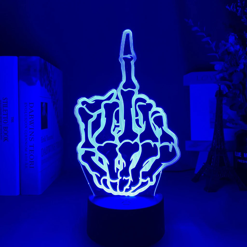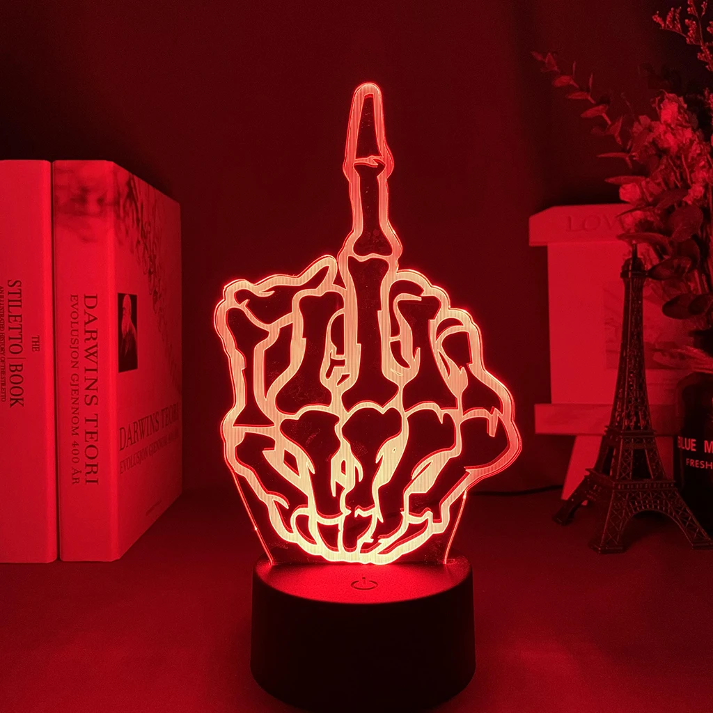 Акриловый 3D светильник в виде черепа среднего пальца, ночник для взрослых мальчиков, декоративный светодиодный ночсветильник для офиса, меняющий цвет атмосферу