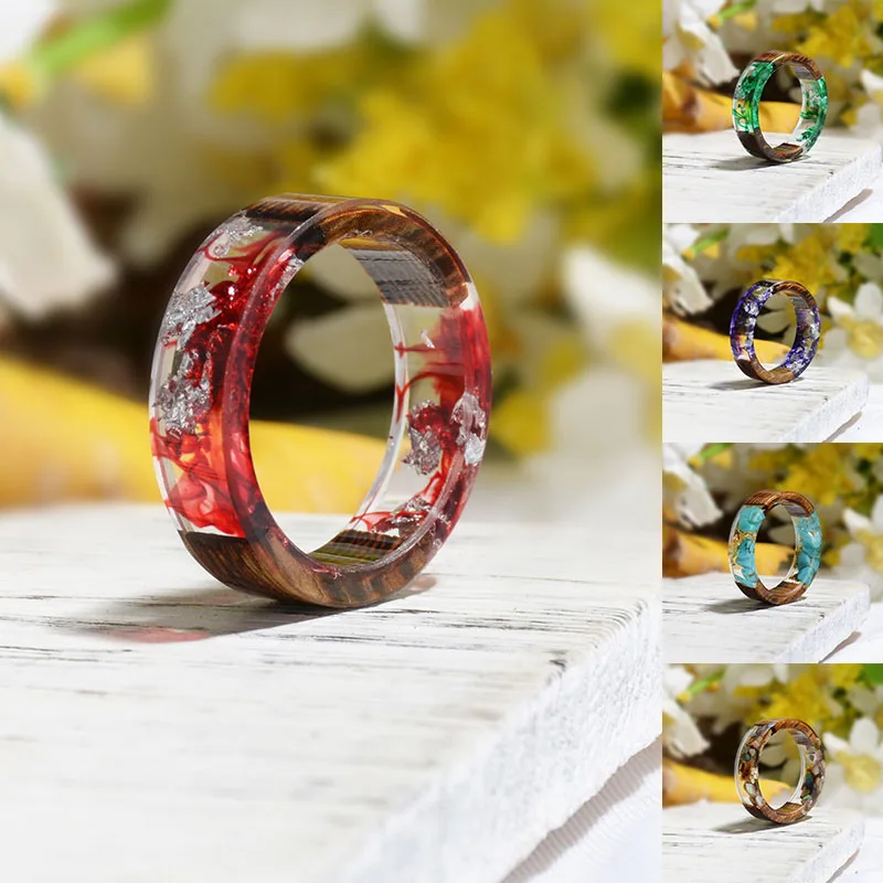 Винтажное деревянное кольцо из смолы для женщин и мужчин, модные обручальные кольца с красочным камнем внутри, Креативные украшения для пальцев ручной работы, ювелирные изделия в подарок