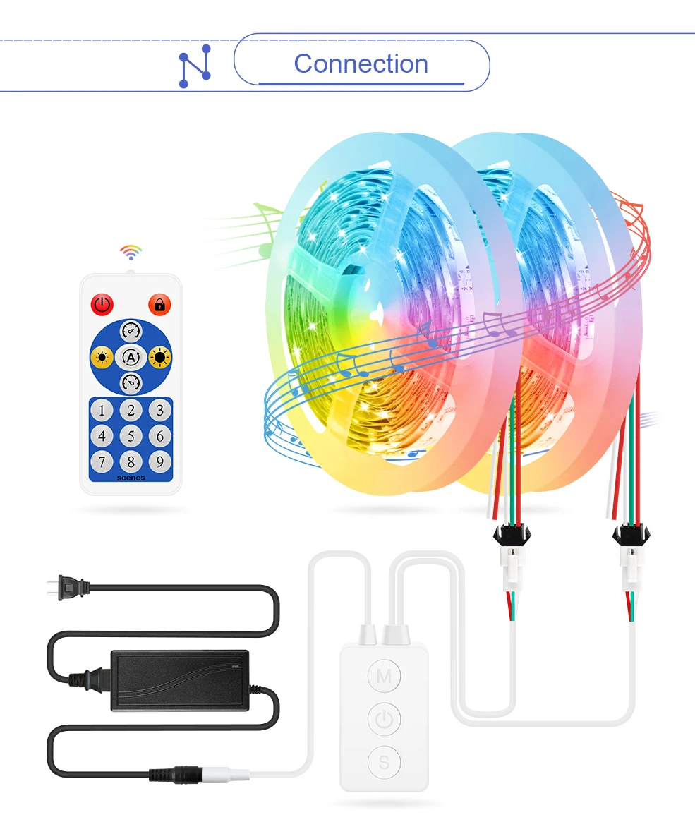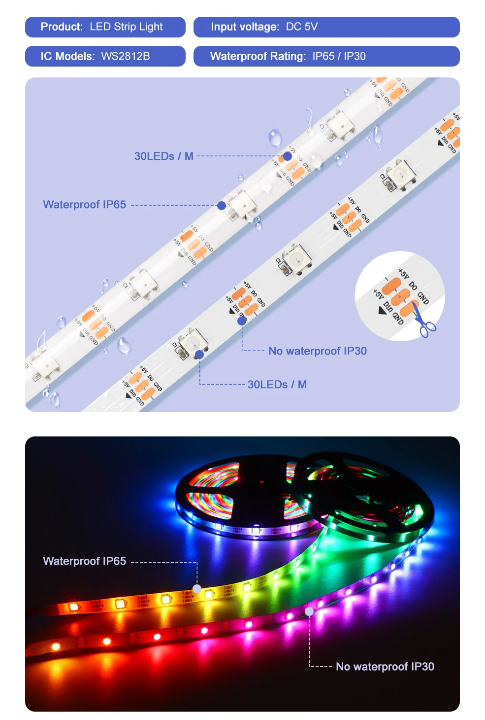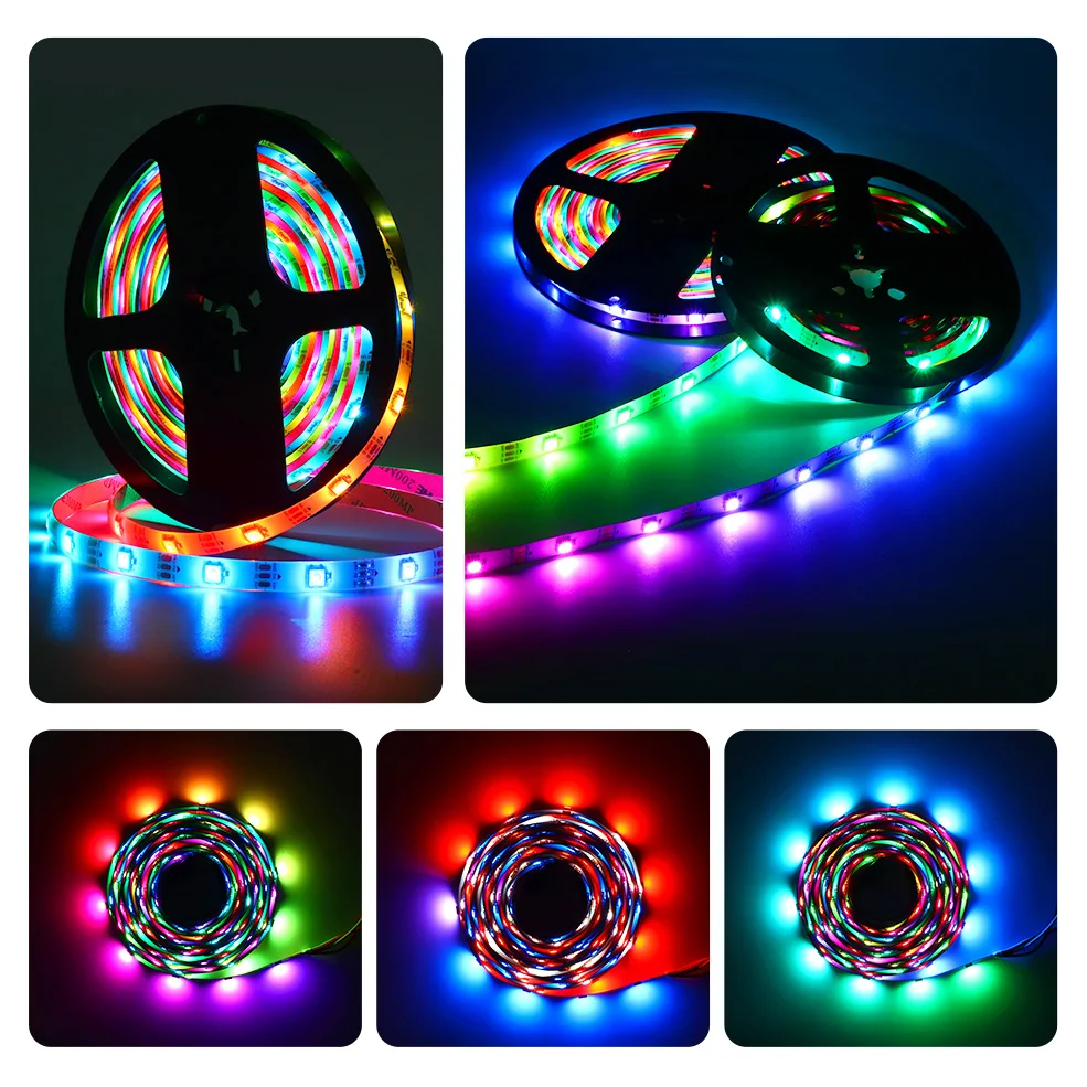RGB Светодиодная лента 5 м 10 м WS2812b DC5V индивидуально Адресуемая светодиодная Пиксельная полоса 30 светодиодовм гибкая лента контроллер адаптер Набор