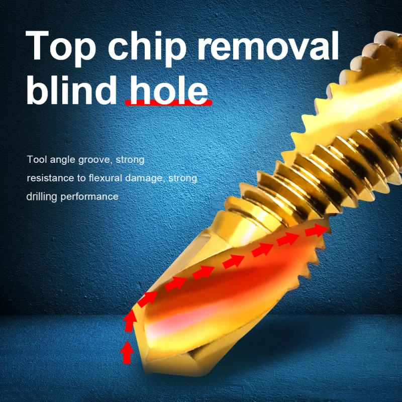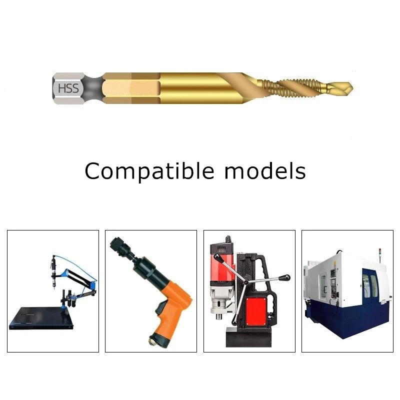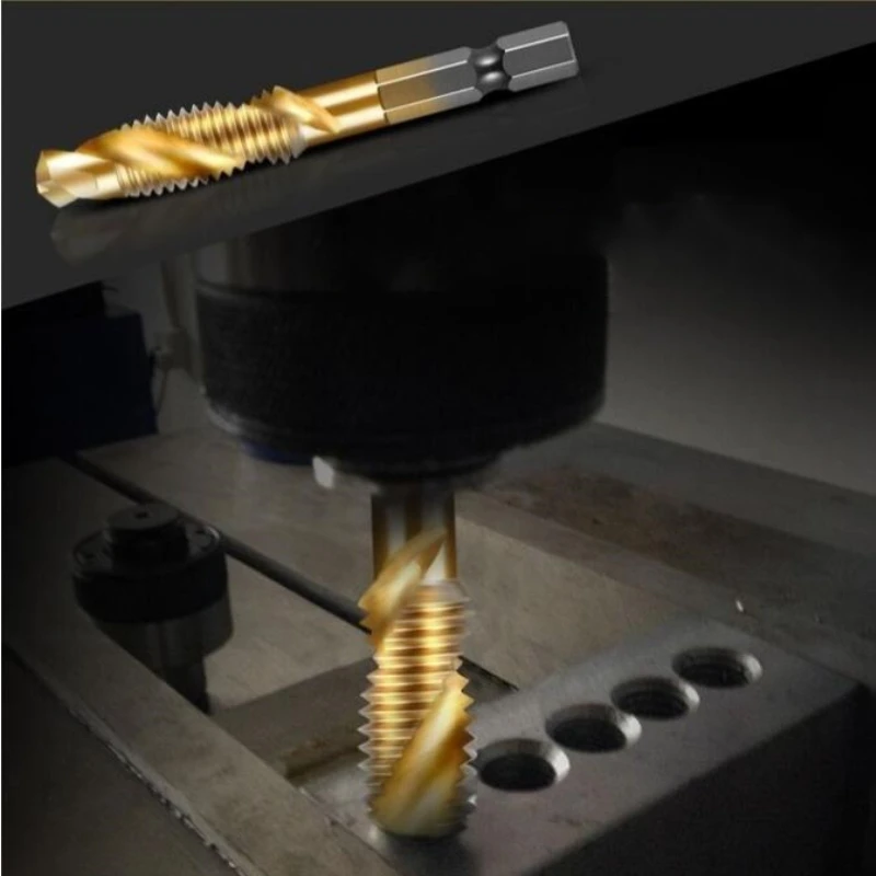 Сверла для метчиков, 6 шт.лот, 14 дюйма, из быстрорежущей стали, с шестигранным хвостовиком, с титановым покрытием, для резьбы, для снятия заусенцев, М3, М4, М5, М6, М8, М10